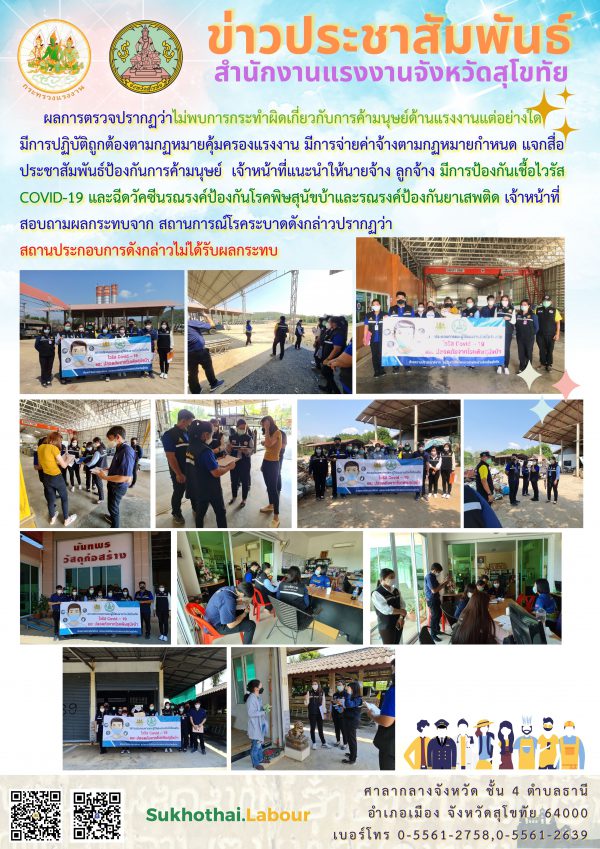สำนักงานแรงงานจังหวัดมุกดาหาร ลงพื้นที่ตรวจบูรณาการสถานประกอบกิจการเพื่อป้องกันการบังคับใช้แรงงานและการค้ามนุษย์ด้านแรงงาน