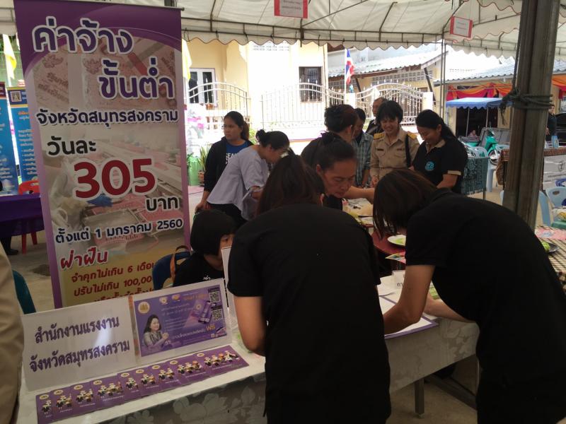 วันนี้ (๑๕ เมษายน ๒๕๖๐) เวลา ๘.๓๐ น. หน่วยงานสังกัด กระทรวงแรงงาน จ.สมุทรสงคราม จัดหน่วยบริการประชาชน เข้าร่วมโครงการบำบัดทุกข์ บำรุงสุข สร้างรอยยิ้มให้ประชาชน เพื่อความปรองดองสมานฉันท์ประจำปีงบประมาณ พ.ศ.๒๕๖๐ โดยมี นายคันฉัตร ตันเสถียร ผวจ. สมุทรสงคราม เป็นประธาน ณ วัดตะโหนดราย ต.บางกระบือ อ.บางคนที จ.สมุทรสงคราม กิจกรรม ประกอบด้วย การสาธิตอาชีพการทำเครปข้าวเหนียวมะม่วง การให้คำแนะนำบริการ ของกระทรวงแรงงาน แนะนำการดาวน์โหลด แอพพลิเคชั่น smart labour การรับปรึกษา ปัญหาร้องทุกข์ ร้องเรียน มีผู้มารับบริการ ๕๕ คน