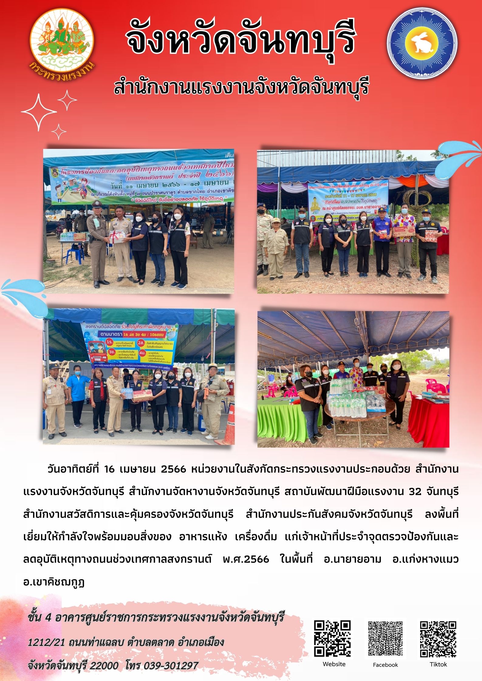 สรจ.จันทบุรี ตรวจเยี่ยมเจ้าหน้าที่ผู้ปฏิบัติงานประจำจุดตรวจ/ด่านชุมชน ในช่วงการรณรงค์ป้องกันและลดอุบัติเหตุทางถนนช่วงเทศการสงกรานต์ พ.ศ.2566