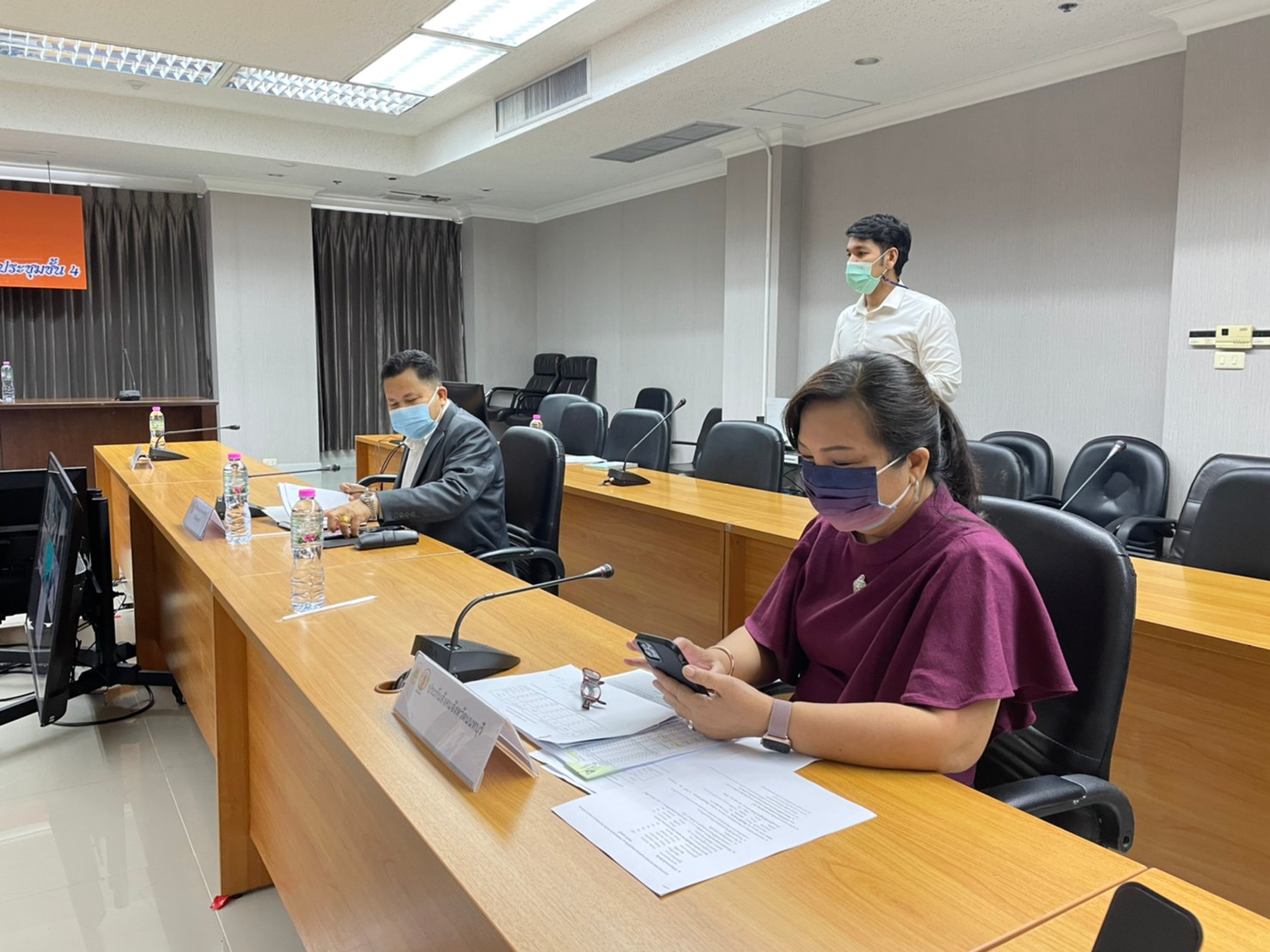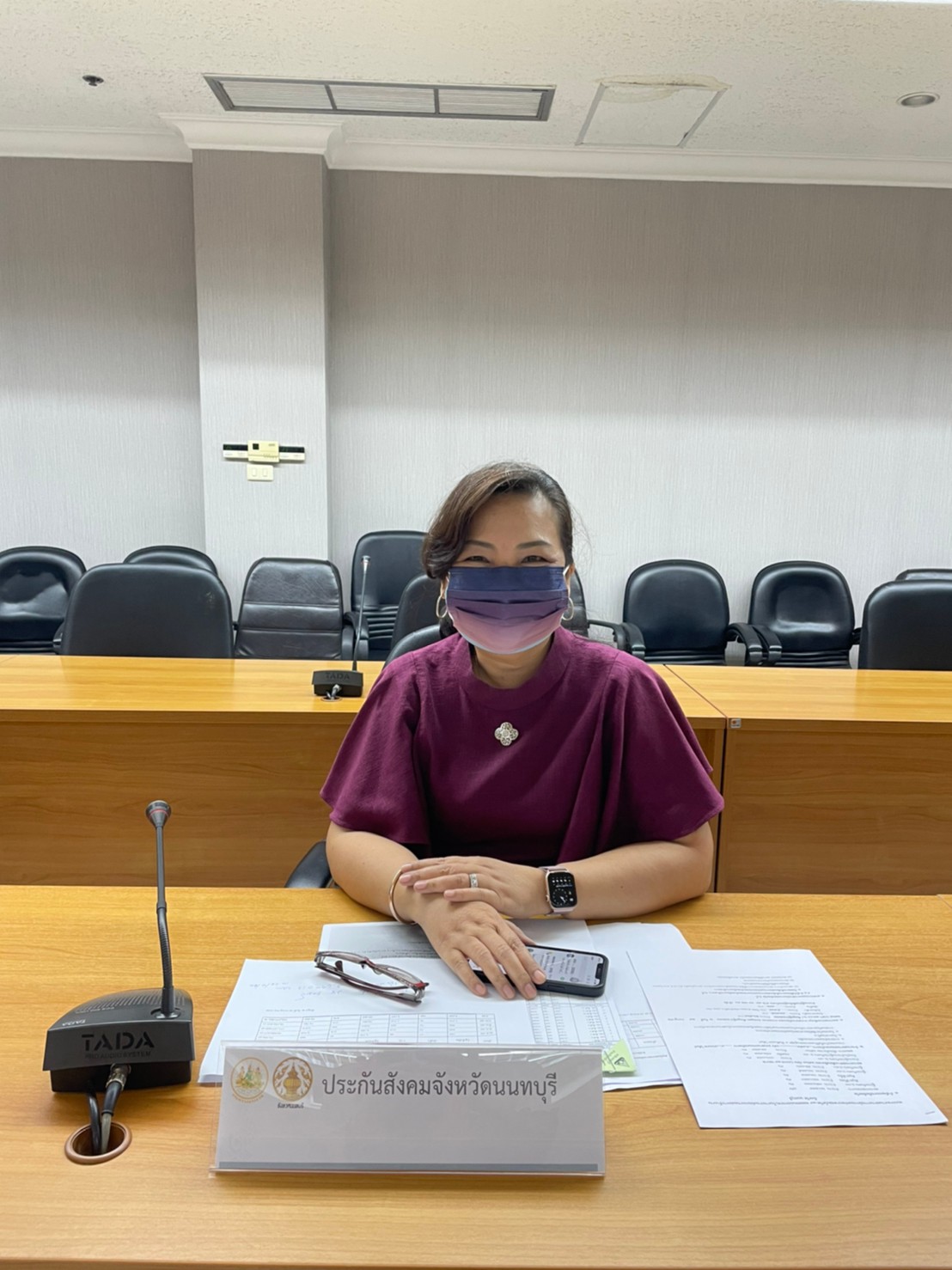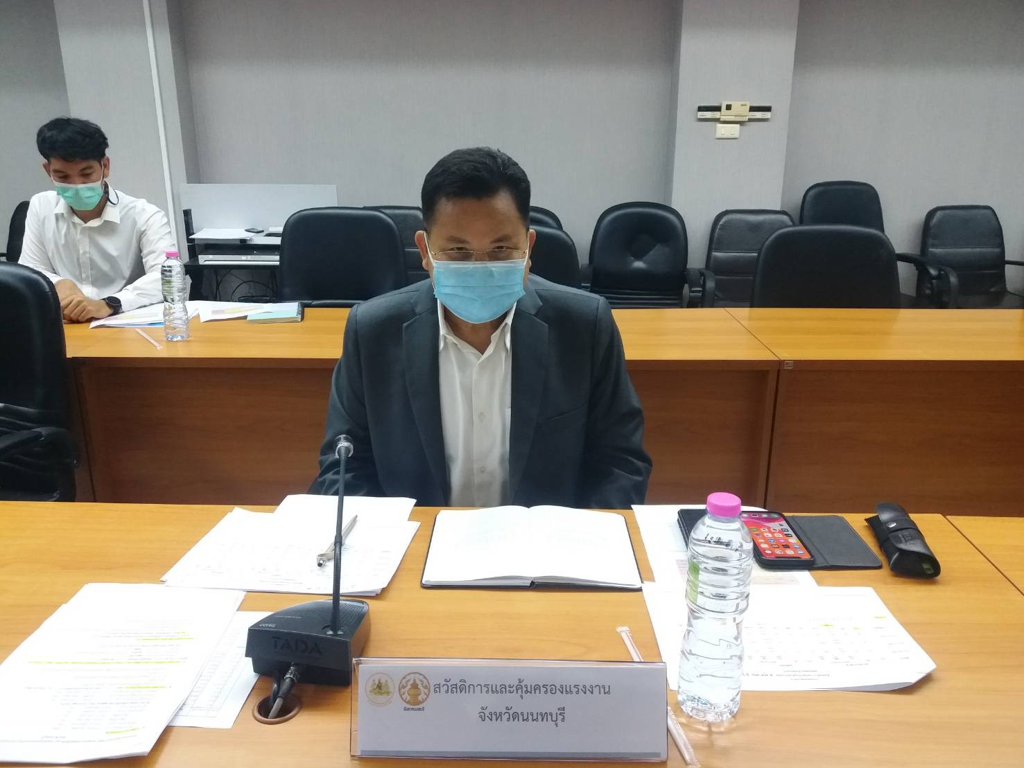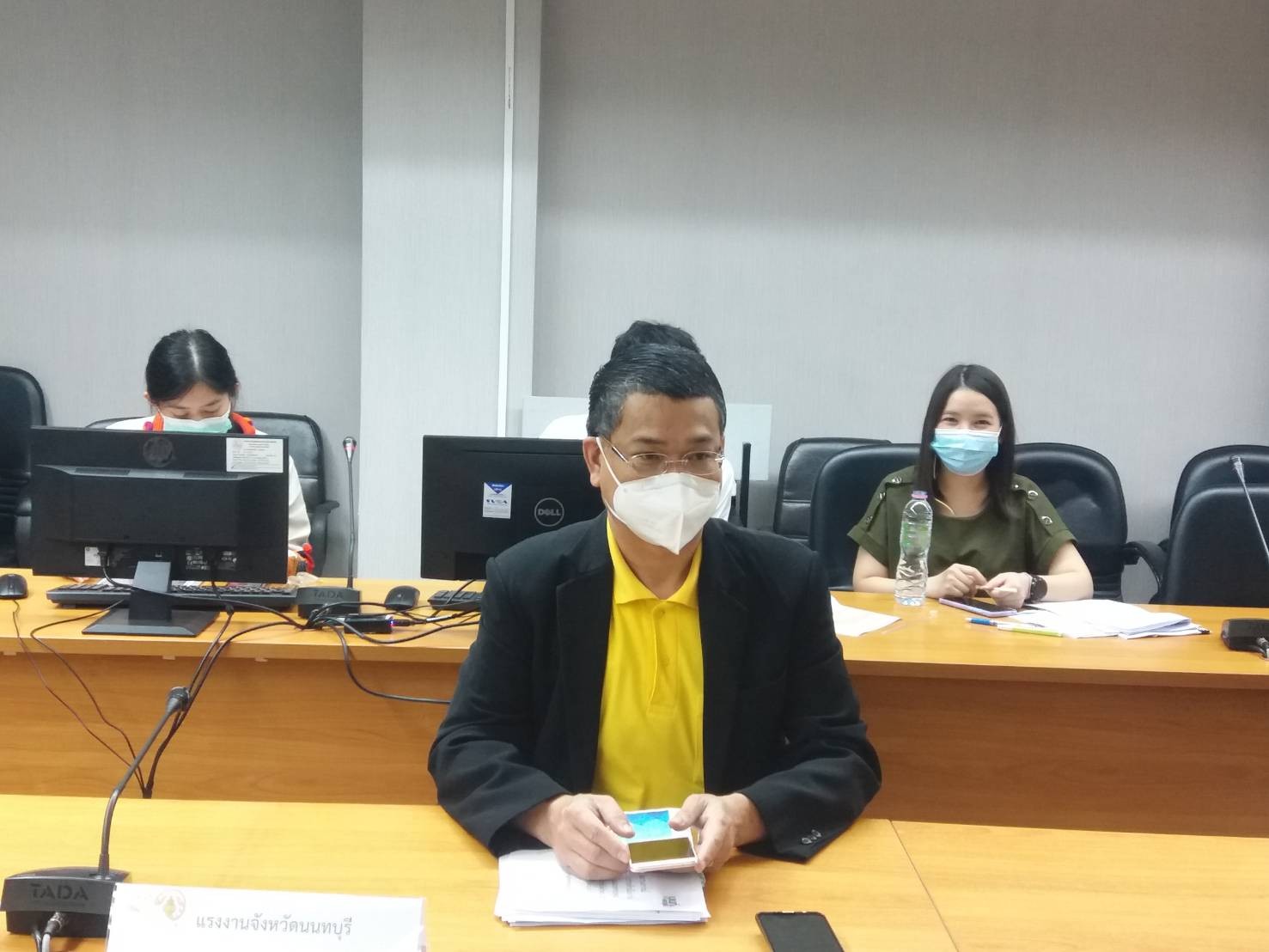สุวรรณมาก แรงงานจังหวัดนนทบุรี นางอนุวรรณ แสงประเสริฐ จัดหางานจังหวัดนนทบุรี นายอัครินทร์ ธารีฉัตรไพศาล สวัสดิการและคุ้มครองจังหวัดนนทบุรี นายสงกรานต์ เพิ่มฤาชัย ผู้อำนวยการสำนักงานพัฒนาฝีมือแรงงานนนทบุรี นางชวนพิศ วิระวงษ์นุสร ประกันสังคมจังหวัดนนทบุรี ผู้แทนนายแพทย์สาธารณสุขจังหวัดนนทบุรี และเจ้าหน้าที่สังกัดสำนักงานแรงงานจังหวัดนนทบุรี เข้าร่วมประชุมดังกล่าว ณ ห้องประชุมราชพฤกษ์ ชั้น 4