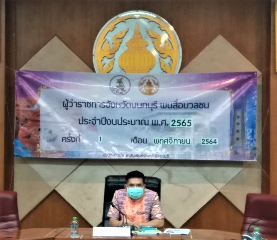 วันที่ 18 พฤศจิกายน 2564 เวลา 10.00 น. นายวิชิตร สุวรรณมาก แรงงานจังหวัดนนทบุรี นางธนพร สุวรรณโณ จัดหางานจังหวัดนนทบุรี นายสุกิจ ครุฑคง สวัสดิการและคุ้มครองแรงงานจังหวัดนนทบุรี และนางชวนพิศ วิระวงษ์นุสร พร้อมด้วยหัวหน้าส่วนราชการ ประจำจังหวัดนนทบุรี ร่วมกิจกรรมผู้ว่าราชการจังหวัดนนทบุรีพบสื่อมวลชน ครั้งที่ 1 ประจำปีงบประมาณ พ.ศ.2565 ณ ห้องประชุมมหาเจษฎาบดินทร์ ชั้น 5 ศาลากลางจังหวัดนนทบุรี โดยมี นายสุจินต์ ไชยชุมศักดิ์ ผู้ว่าราชการจังหวัดนนทบุรี เป็นประธานรายการ
