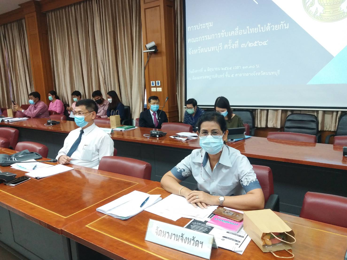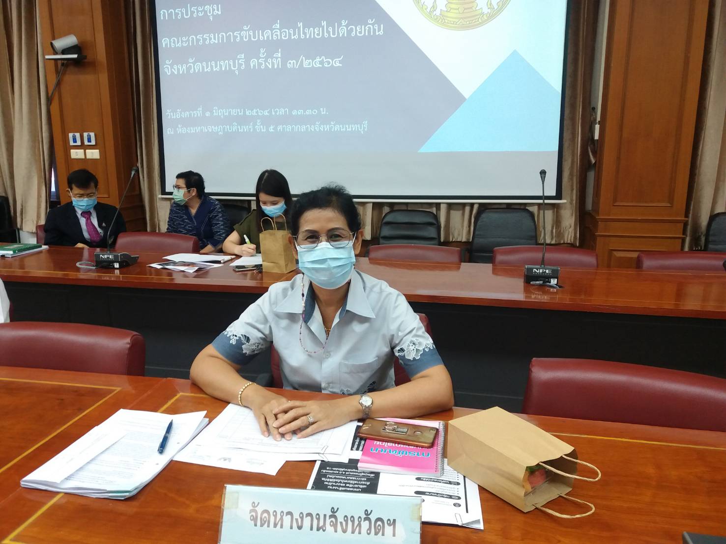 วันที่ 1 มิถุนายน 2564 เวลา 13.30น. นายวิชิตร สุวรรณมาก แรงงานจังหวัดนนทบุรี ผู้แทนจัดหางานจังหวัดนนทบุรี ผู้แทนผู้อำนวยการสำนักงานพัฒนาฝีมือแรงงานนนทบุรี และหน่วยงานราชการที่เกี่ยวข้อง ร่วมประชุมคณะกรรมการขับเคลื่อนไทยไปด้วยกันจังหวัดนนทบุรี ครั้งที่ 3/2564 ณ ห้องประชุมมหาเจษฎาบดินทร์ ชั้น 5 อาคารศาลากลางจังหวัดนนทบุรี โดยมี นางสาวอโรชา นันทมนตรี รองผู้ว่าราชการจังหวัดนนทบุรีเป็นประธานการประชุม