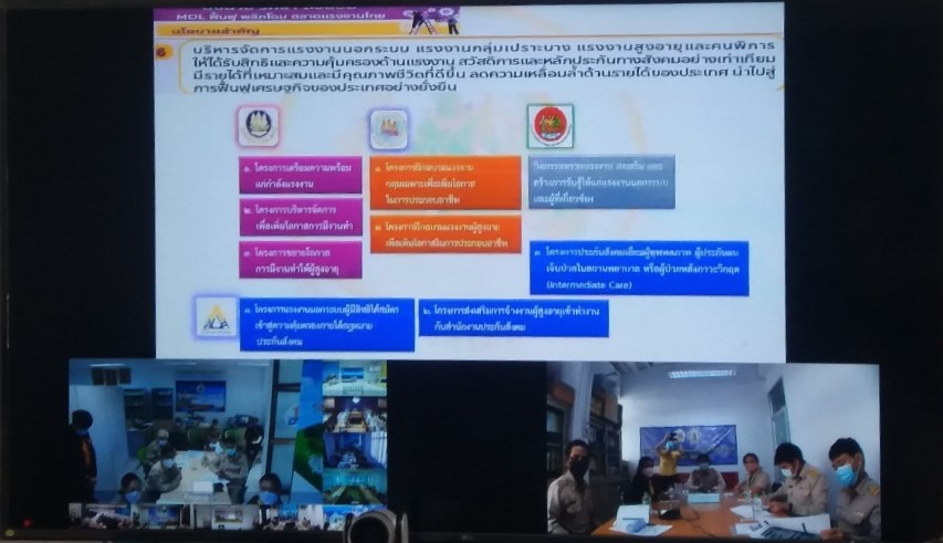 เมื่อวันที่ 7 กุมภาพันธ์ 2565 นายวิชิตร สุวรรณมาก แรงงานจังหวัดนนทบุรี นางชวนพิศ วิระวงษ์นุสร ประกันสังคมจังหวัดนนทบุรี นายสงกรานต์ เพิ่มฤาชัย ผู้อำนวยการสำนักงานพัฒนาฝีมือแรงงานนนทบุรี ผู้แทนจัดหางานจังหวัดนนทบุรี ผู้แทนสวัสดิการและคุ้มครองแรงงานจังหวัดนนทบุรี พร้อมด้วยเจ้าหน้าที่สำนักงานแรงงานจังหวัดนนทบุรี ร่วมประชุมชี้แจงแนวทางการตรวจราชการของผู้ตรวจราชการกระทรวงแรงงาน ประจำปีงบประมาณ พ.ศ. 2565 รอบที่ 1 (Project Review) แก่หัวหน้าส่วนราชการสังกัดกระทรวงแรงงานในส่วนภูมิภาค ผ่านรบบการประชุมทางไกล (Video Conference) ณ ห้องประชุมสำนักงานแรงงานจังหวัดนนทบุรี อาคารศาลากลางจังหวัดนนทบุรี