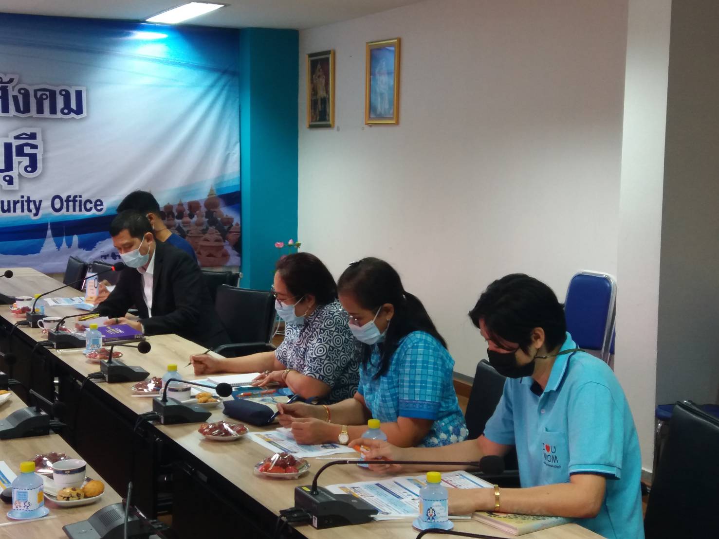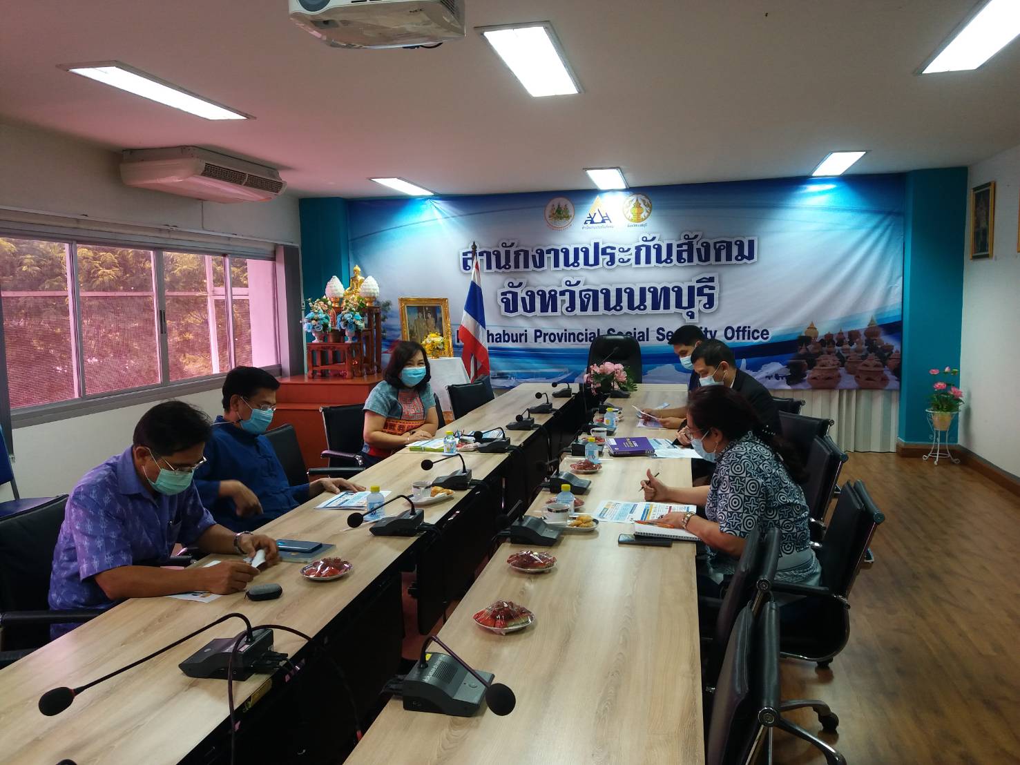 วันที่ 19 กุมภาพันธ์ 2564 เวลา 13.30น. นายวิชิตร สุวรรณมาก แรงงานจังหวัดนนทบุรี นางชวนพิศ วิระวงษ์นุสร ประกันสังคมจังหวัดนนทบุรี นายสงกรานต์ เพิ่มฤๅชัย ผู้อำนวยการสำนักงานพัฒนาฝีมือแรงงานนนทบุรี ผู้แทนจากจัดหางานจังหวัดนนทบุรี และผู้แทนจากสวัสดิการและคุ้มครองจังหวัดนนทบุรี ประชุมร่วมกันเกี่ยวกับโครงการ ม.33 เรารักกัน ณ ห้องประชุม ชั้น 3 สำนักงานประกันสังคมจังหวัดนนทบุรี เพื่อให้หน่วยงานในสังกัดกระทรวงแรงงานจังหวัดนนทบุรี ทราบถึง หลักเกณฑ์และเงื่อนไขของโครงการ และสามารถให้ข้อมูลกับประชาชนได้ ทั้งนี้ การประชุมดังกล่าวจัดโดยสำนักงานประกันสังคมจังหวัดนนทบุรี