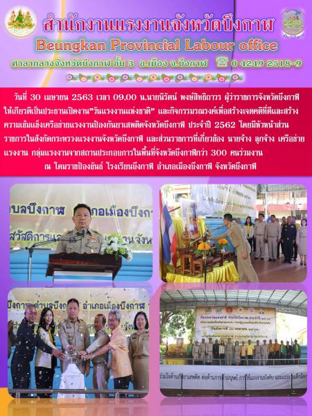 หน่วยงานในสังกัดกระทรวงแรงงานจังหวัดบึงกาฬ จัดงานวันแรงงานแห่งชาติ ปี 2562