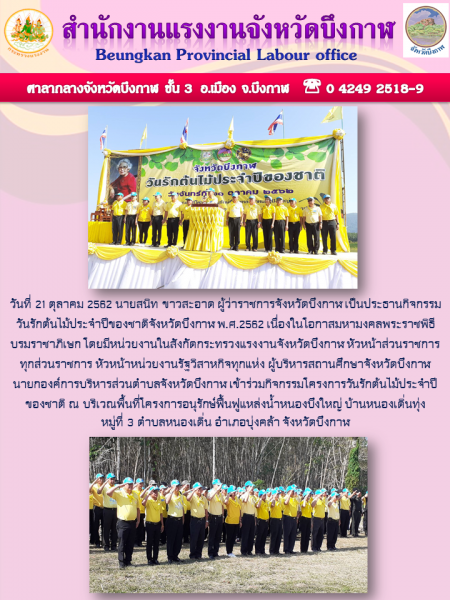 หน่วยงานในสังกัดกระทรวงแรงงานจังหวัดบึงกาฬ ร่วมกิจกรรมวันรักต้นไม้ประจำปีของชาติจังหวัดบึงกาฬ พ.ศ.2562