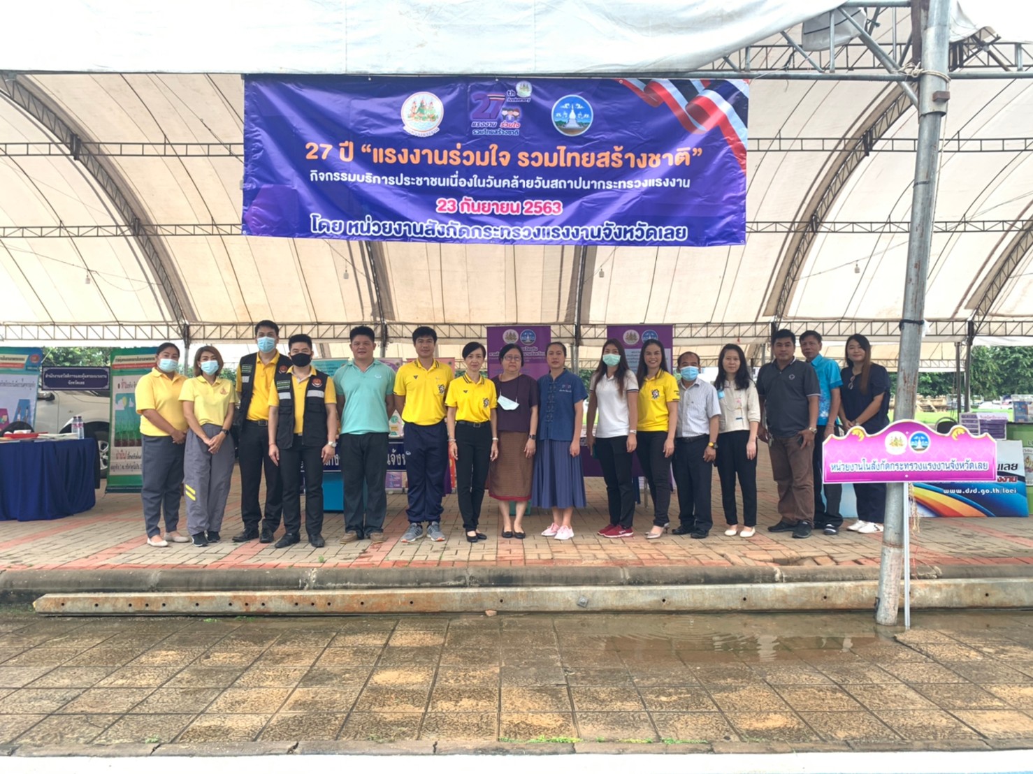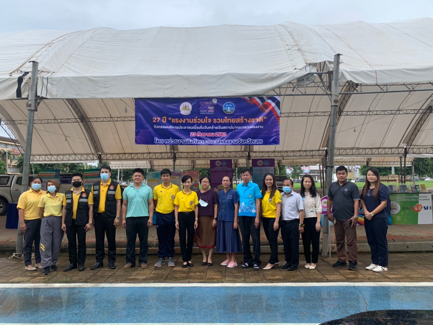 วันที่ 23 กันยายน 2563 เวลา 10.00 น. หน่วยงานในสังกัดกระทรวงแรงงานจังหวัดเลย จัดกิจกรรม 27 ปี “แรงงานร่วมใจ รวมไทยสร้างชาติ” กิจกรรมบริการประชาชนเนื่องในวันคล้ายวันสถาปนากระทรวงแรงงาน สร้างการรับรู้ ประชาสัมพันธ์ ภารกิจของหน่วยงาน และให้บริการด้านแรงงาน ได้แก่ การให้คำปรึกษาแนะนำด้านกฎหมายแรงงาน การส่งเสริมการมีงานทำ การพัฒนาฝีมือแรงงาน และการรับสมัครผู้ประกันตนมาตรา 40 ณ บริเวณหน้าศาลากลางจังหวัดเลย อำเภอเมืองเลย จังหวัดเลย