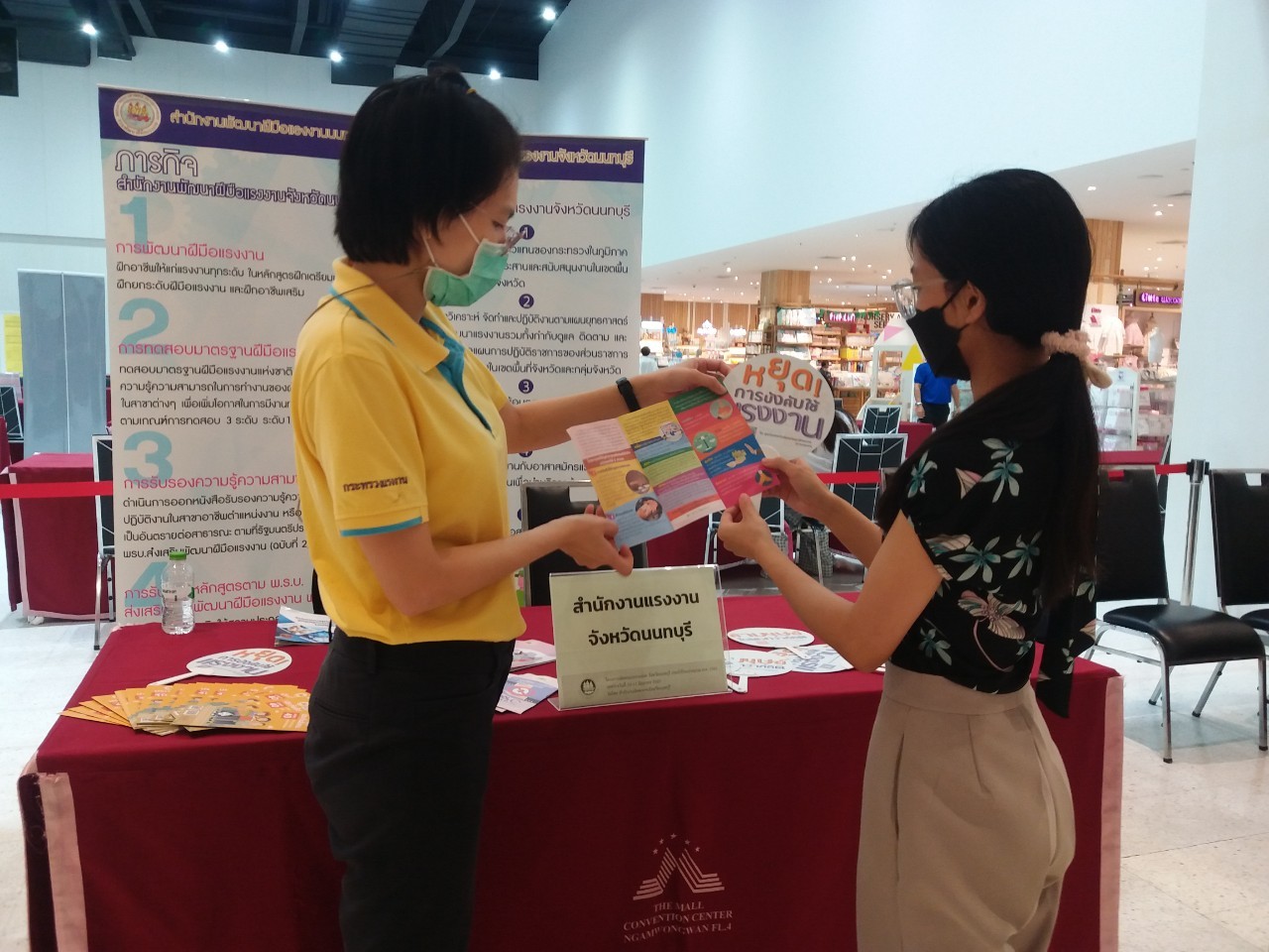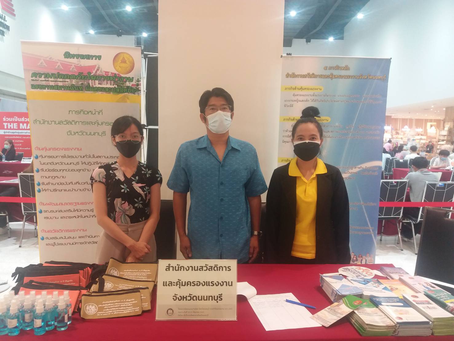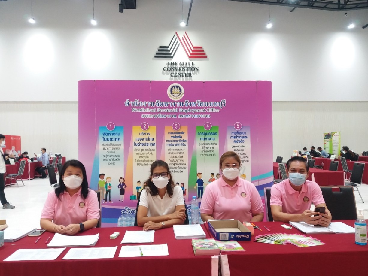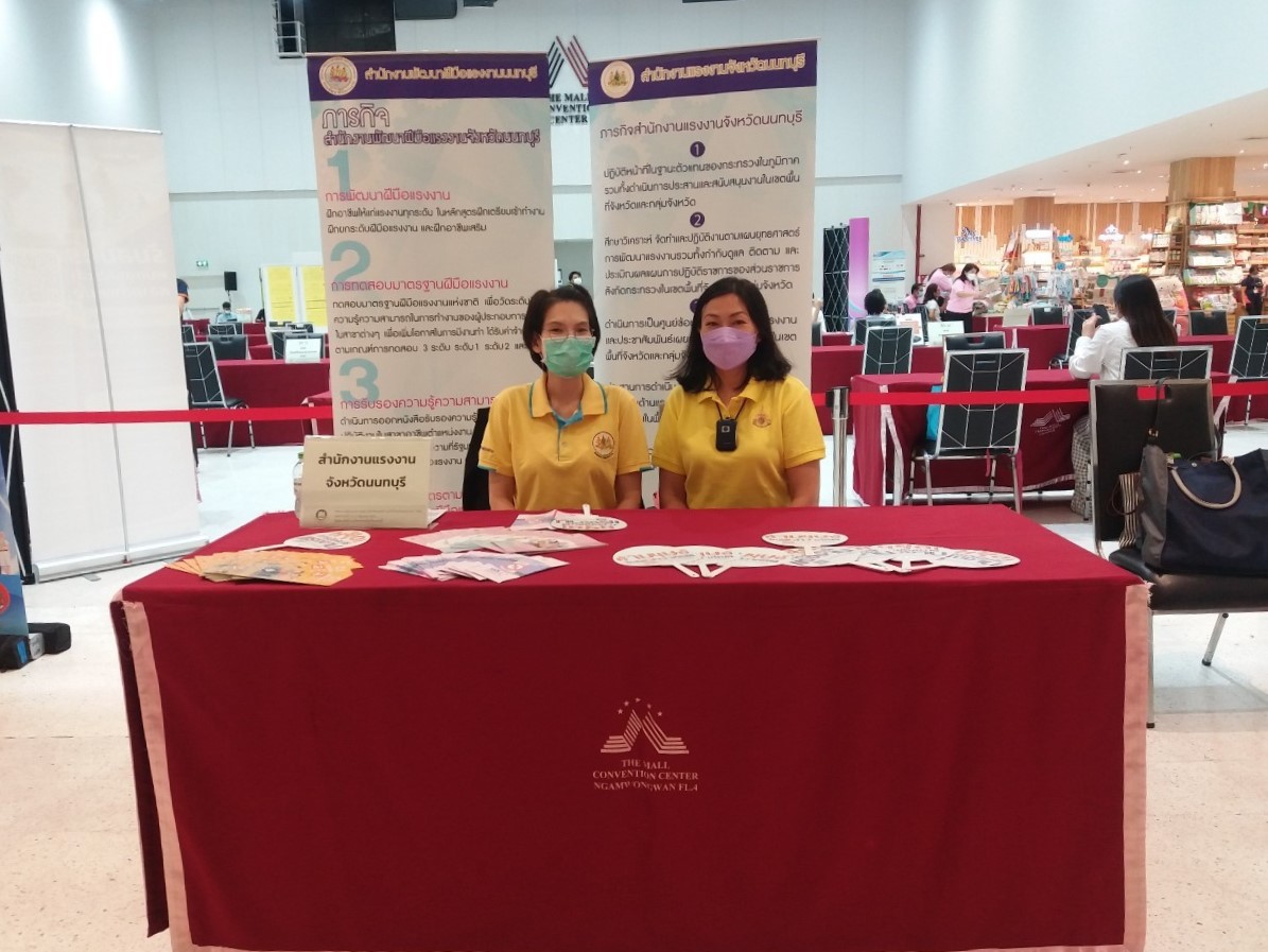 วันที่ 10 มิถุนายน 2565 เวลา 09.00 น. นายวิชิตร สุวรรณมาก แรงงานจังหวัดนนทบุรี มอบหมายให้ นางสาวลัลน์ภัทรา ปิยะวงศ์มงคล นักวิชาการแรงงาน และนางสาวพัชรี สัตยารังสรรค์ เจ้าหน้าที่วิเคราะห์และประเมินผลเบื้องต้น ออกพื้นที่ให้บริการประชาชน ในกิจกรรมนัดพบแรงงานย่อย จังหวัดนนทบุรี ณ MCC Hall ชั้น 4 ศูนย์การค้าเดอะมอลล์ไลฟ์สโตร์ งามวงศ์วาน ตำบลบางเขน อำเภอเมืองนนทบุรี จังหวัดนนทบุรี ร่วมกับเจ้าหน้าที่สำนักงานสวัสดิการและคุ้มครองแรงงาน จังหวัดนนทบุรี เจ้าหน้าที่สำนักงานประกันสังคมจังหวัดนนทบุรี ร่วมถึงสถานประกอบการจำนวนมาก ที่เข้าร่วมกิจกรรมดังกล่าว ซึ่งจัดโดยสำนักงานจัดหางานจังหวัดนนทบุรี ทั้งนี้สำนักงานแรงงานจังหวัดนนทบุรี ได้จัดตั้งบูธเพื่อให้บริการความรู้ด้านแรงงานแก่ประชาชนที่สนใจ พร้อมทั้งประชาสัมพันธ์ เกี่ยวกับการป้องกันและปราบปรามการทุจริต (MOL ZERO CORRUPTION)