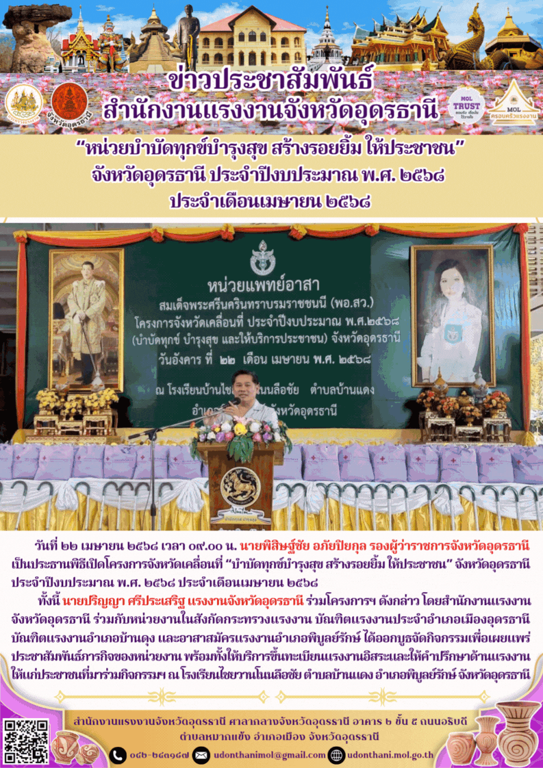 “หน่วยบำบัดทุกข์บำรุงสุข สร้างรอยยิ้ม ให้ประชาชน” จังหวัดอุดรธานี ประจำปีงบประมาณ พ.ศ. ๒๕๖๘ ประจำเดือนเมษายน ๒๕๖๘