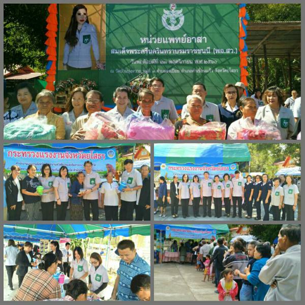 วันนี้ (23 พฤศจิกายน 2560) นายนิกร สุกใส ผู้ว่าราชการจังหวัดยโสธร เป็นประธานพิธีเปิดหน่วยแพทย์อาสาสมเด็จพระศรีนครินทราบรมราชชนนี (พอ.สว) โดยมีนางอรวรรณ หินตะ แรงงานจังหวัดยโสธร พร้อมด้วยหัวหน้าส่วนราชการ ข้าราชการ พนักงาน และเจ้าหน้าที่หน่วยงานสังกัดกระทรวงแรงงานจังหวัดยโสธร ร่วมออกบูทให้บริการ แนะนำ ปรึกษาปัญหาด้านแรงงาน ณ บ้านบุ่งหวาย หมู่ที่ 3 ต.สงเปือย อ.คำเขื่อนแก้ว จ.ยโสธร