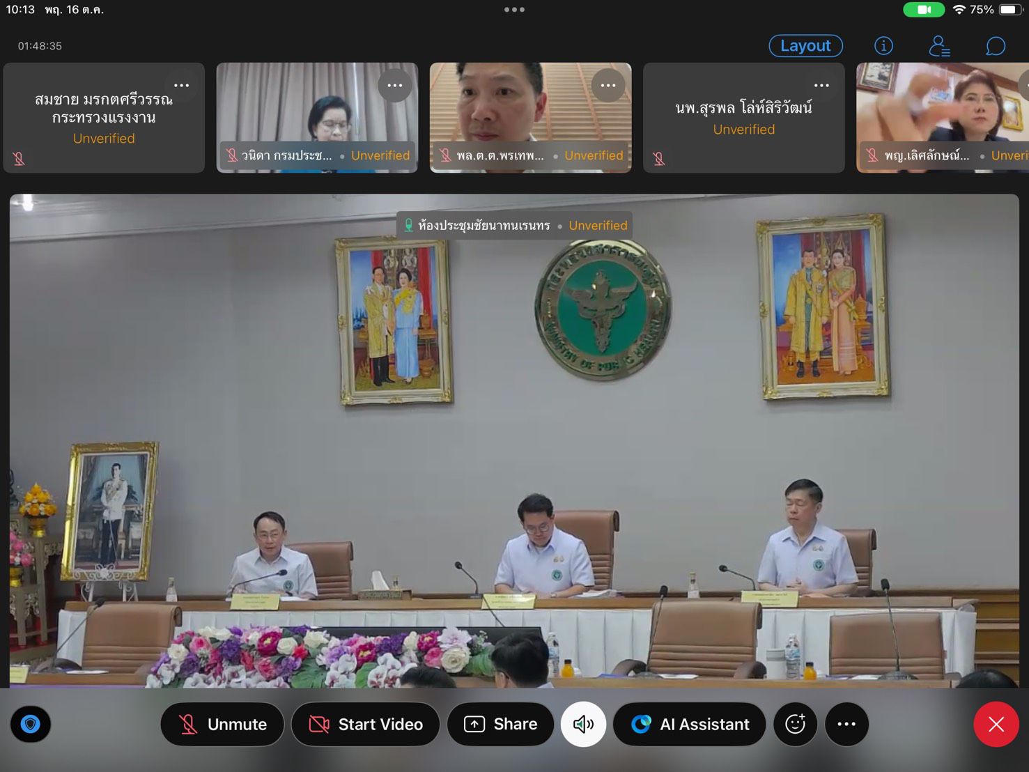 วันที่ 16 ตุลาคม 2568 เวลา 10.00 น. นายสมชาย มรกตศรีวรรณ หัวหน้าผู้ตรวจราชการกระทรวงแรงงาน ร่วมประชุมคณะกรรมการโรคติดต่อแห่งชาติ ตามพระราชบัญญัติโรคติดต่อ พ.ศ. 2558 ครั้งที่ 5/2568 ผ่านระบบ Webex โดยมี นายพัฒนา พร้อมพัฒน์ รัฐมนตรีว่าการกระทรวงสาธารณสุข เป็นประธานการประชุม ณ ห้องทำงาน สำนักผู้ตรวจราชการกระทรวง ชั้น 8 อาคารกระทรวงแรงงาน