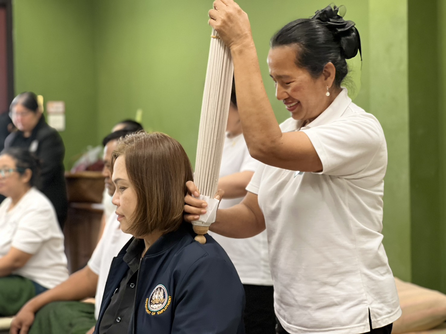 วันที่ 26 กุมภาพันธ์ 2569 เวลา 16.00 น. นางสาวบุณยวีร์ ไขว้พันธุ์ หัวหน้าผู้ตรวจราชการกระทรวงแรงงาน พร้อมด้วย นางวีรยา รัตนนิตย์ ผู้ตรวจราชการกรม กรมการจัดหางาน หัวหน้าส่วนราชการสังกัดกระทรวงแรงงานจังหวัดเชียงใหม่ ลงพื้นที่ตรวจติดตามการฝึกอบรมโครงการพัฒนาศักยภาพแรงงานขับเคลื่อนการเติบโตภาคเศรษฐกิจและสังคมอย่างยั่งยืน กิจกรรมย่อยพัฒนาทักษะตามความต้องการของผู้ประกอบการอุตสาหกรรมท่องเที่ยวและบริการ รุ่นที่ 11/2569 หลักสูตรการนวดด้วยจิกจ้อง ณ สถาบันพัฒนาทรัพยากรมนุษย์สําหรับอุตสาหกรรมบริการสุขภาพ (DSD Wellness Center) ตำบลร้องวัวแดง อำเภอสันกำแพง จังหวัดเชียงใหม่