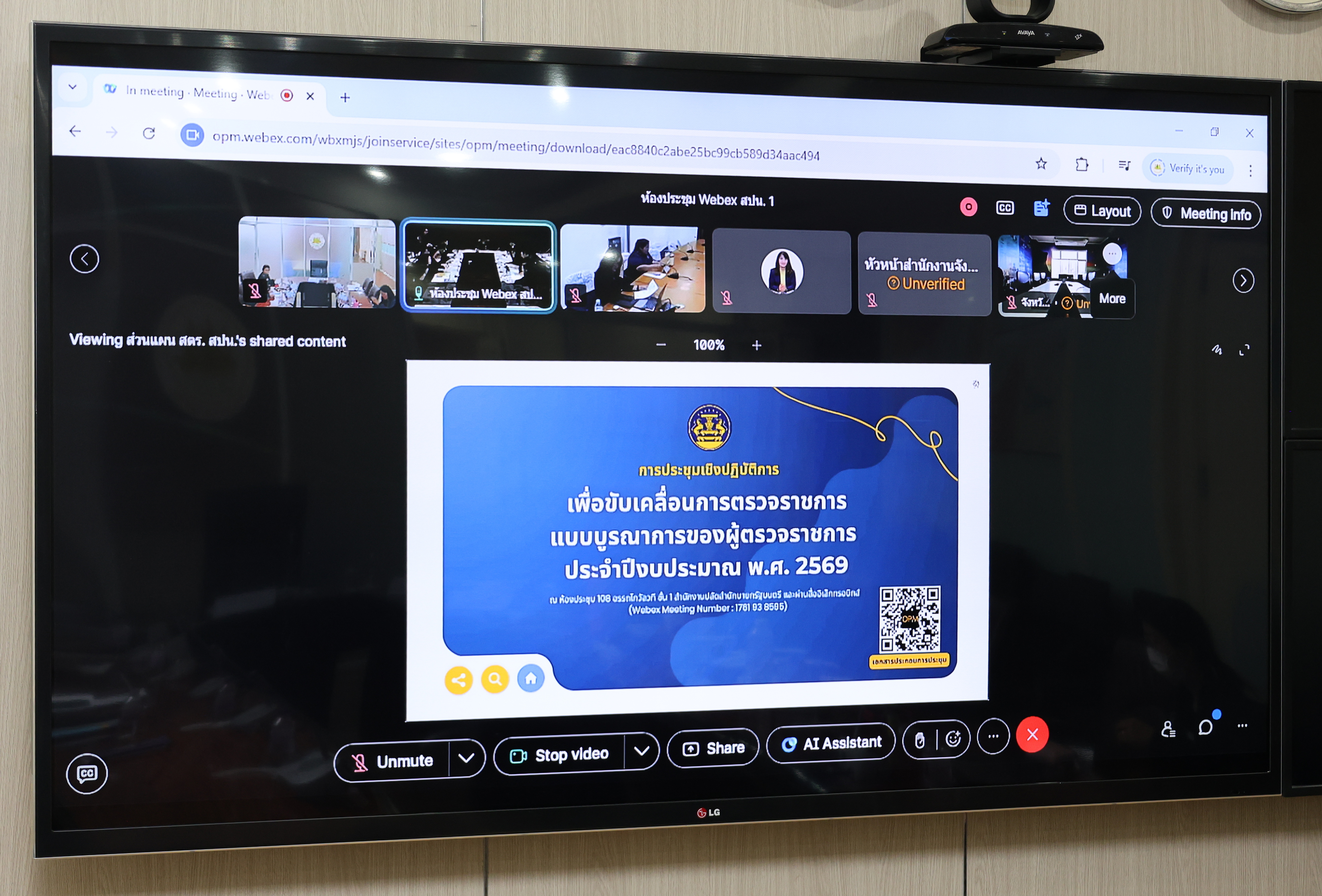 วันที่ 16 มกราคม 2569 เวลา 09.00 น. นางสาวบุณยวีร์ ไขว้พันธุ์ หัวหน้าผู้ตรวจราชการกระทรวงแรงงาน เข้าร่วมการประชุมเชิงปฏิบัติการเพื่อขับเคลื่อนการตรวจราชการแบบบูรณาการของผู้ตรวจราชการ ประจำปีงบประมาณ พ.ศ. 2569 (ผ่านสื่ออิเล็กทรอนิกส์) โดยมี นายนพพร บุญแก้ว รองปลัดสำนักนายกรัฐมนตรี เป็นประธานเปิดการประชุม ว่าที่ร้อยตรี สมศักดิ์ พรหมดำ ผู้ตรวจราชการกระทรวงแรงงาน นางสาวจีระภา บุญรัตน์ ผู้ตรวจราชการกระทรวงแรงงาน นายสิบหมื่นชัย โพธิสินธุ์ ผู้ตรวจราชการกระทรวงแรงงาน ผู้บริหารกระทรวงแรงงาน เจ้าหน้าที่หน่วยงานที่เกี่ยวข้องเข้าร่วมการประชุม ณ ห้องประชุมแสงสิงแก้ว ชั้น 5 อาคารกระทรวงแรงงาน