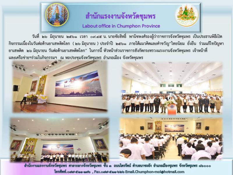หัวหน้าส่วนราชการสังกัดกระทรวงแรงงานจังหวัดชุมพร ร่วมกิจกรรมเนื่องในวันต่อต้านยาเสพติดโลก