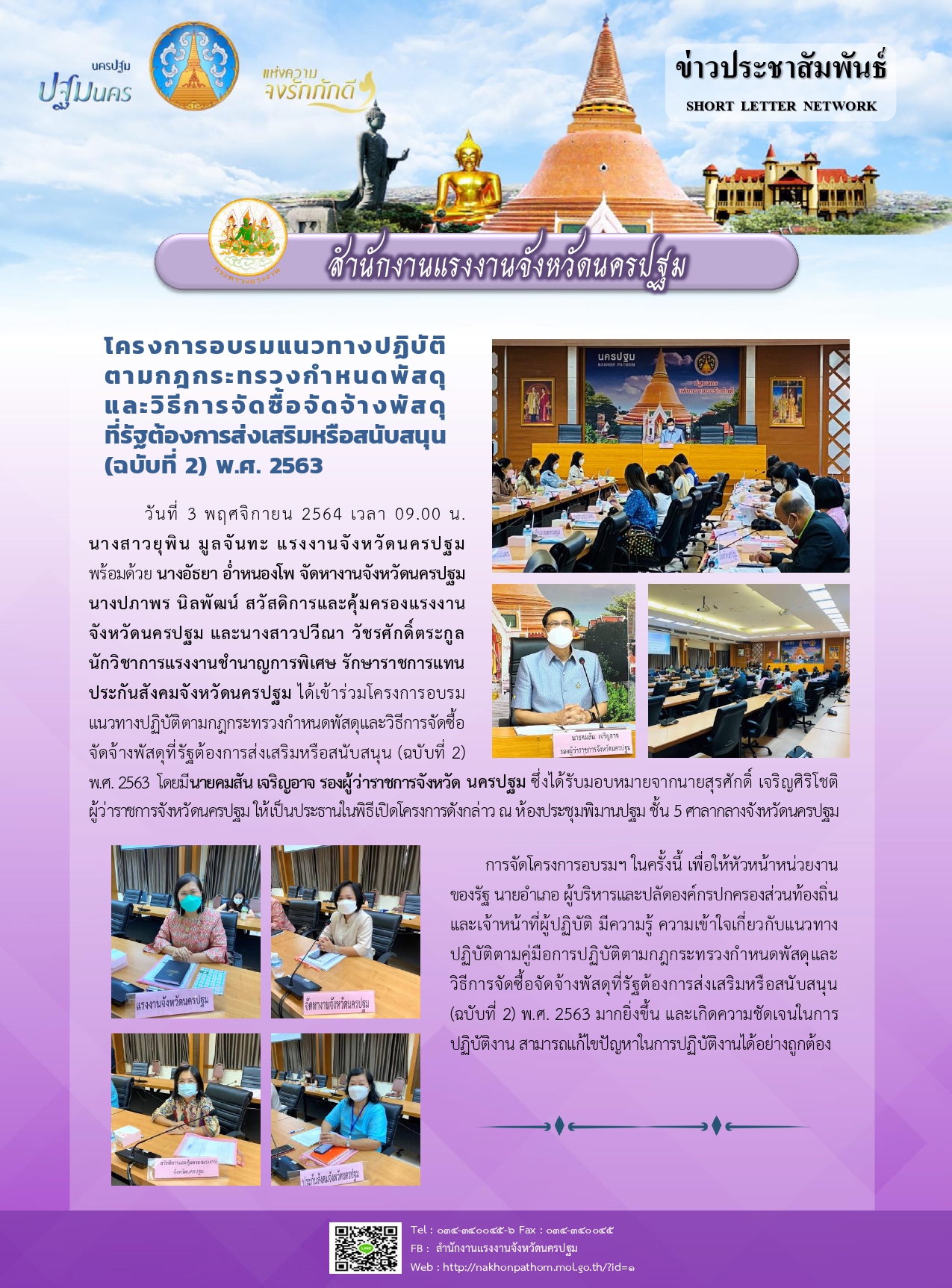 หัวหน้าส่วนราชการสังกัดกระทรวงแรงงานจังหวัดนครปฐม เข้าร่วมโครงการอบรมแนวทางปฏิบัติตามกฎกระทรวงกำหนดพัสดุและวิธีการจัดซื้อจัดจ้างพัสดุที่รัฐต้องการส่งเสริมหรือสนับสนุน (ฉบับที่ 2) พ.ศ. 2563