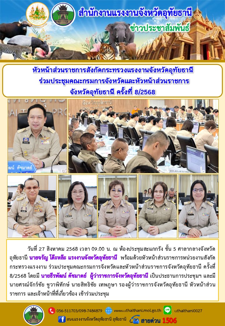 หัวหน้าส่วนราชการสังกัดกระทรวงแรงงานจังหวัดอุทัยธานี ร่วมประชุมคณะกรมการจังหวัดและหัวหน้าส่วนราชการ จังหวัดอุทัยธานี ครั้งที่ 8/2568