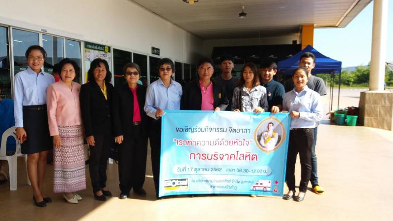 วันพฤหัสบดีที่ 17 ตุลาคม 2562 เวลา 09.00 น. หัวหน้าส่วนราชการและผู้แทนหน่วยงาน สังกัดกระทรวงแรงงานจังหวัดหนองบัวลำภู พร้อมด้วยเจ้าหน้าที่ ร่วมกิจกรรมจิตอาสา ” เราทำความดี ด้วยหัวใจ” บริจาคโลหิต เพื่อน้อมรำลึกในพระมหากรุณาธิคุณ ของพระบาทสมเด็จพระปรเมนทรรามาธิบดี ศรีสินทรมหาวชิราลงกรณ มหิศรภูมิพลราชวรางกูร กิตติสิริสมบูรณอดุลยเดช สยามินทราธิเบศรราชวโรดม บรมนาถบพิตร พระวชิระเกล้าเจ้าอยู่หัว ณ บริษัท สยามโกลบอลเฮ้าส์ จำกัด (มหาชน) สาขาหนองบัวลำภู อำเภอเมือง จังหวัดหนองบัวลำภู