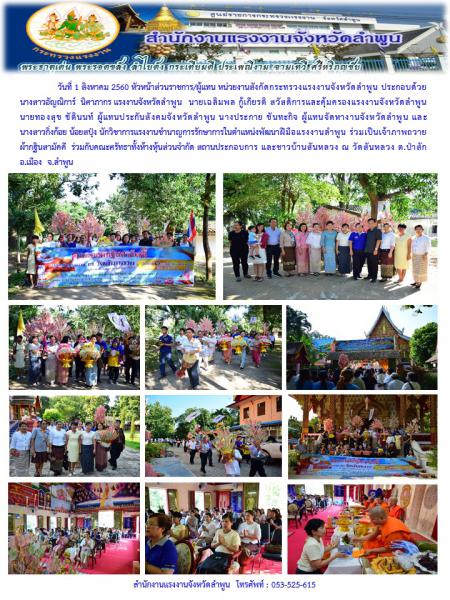 หัวหน้าส่วนราชการ/ผู้แทน หน่วยงานสังกัดกระทรวงแรงงานจังหวัดลำพูน ร่วมเป็นเจ้าภาพถวาย ผ้ากฐินสามัคคี ร่วมกับคณะศรัทธาทั้งห้างหุ้นส่วนจำกัด สถานประกอบการ และชาวบ้านสันหลวง