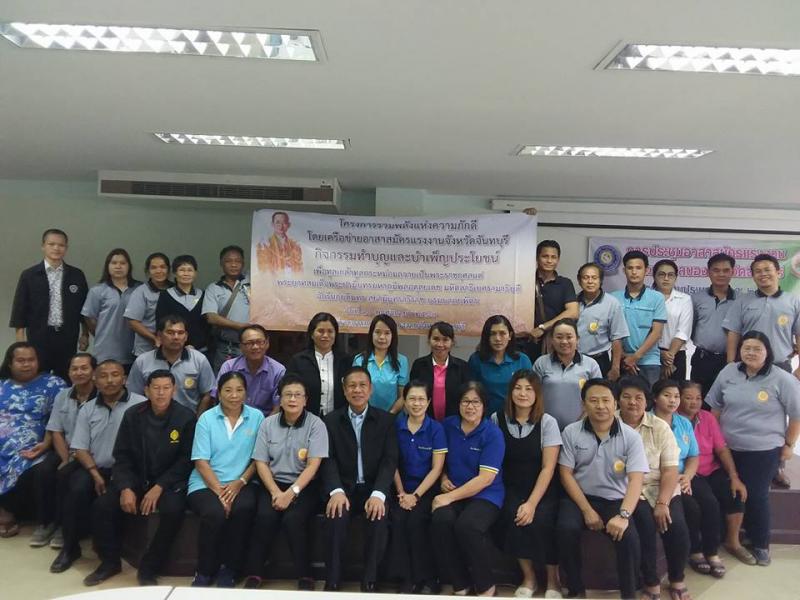 หัวหน้าส่วนราชการ พร้อมด้วยเจ้าหน้าที่หน่วยงานในสังกัดกระทรวงแรงงาน และแกนนำอาสาสมัครแรงงานจังหวัดจันทบุรี ร่วมกิจกรรมทำบุญตักบาตรและบำเพ็ญประโยชน์เพื่อถวายเป็นพระราชการกุศลแด่พระบาทสมเด็จพระปรมินทรมหาภูมิพลอดุลยเดช มหิตลาธิเบศรรามาธิบดี จักรีนฤบดินทร สยามินทราธิราช บรมนาถบพิตร ตามโครงการรวมพลังแห่งความภักดีโดยเครือข่ายอาสาสมัครแรงงาน ณ ศูนย์ราชการกระทรวงแรงงานจังหวัดจันทบุรี เมื่อวันที่ 10 พ.ย. 2560