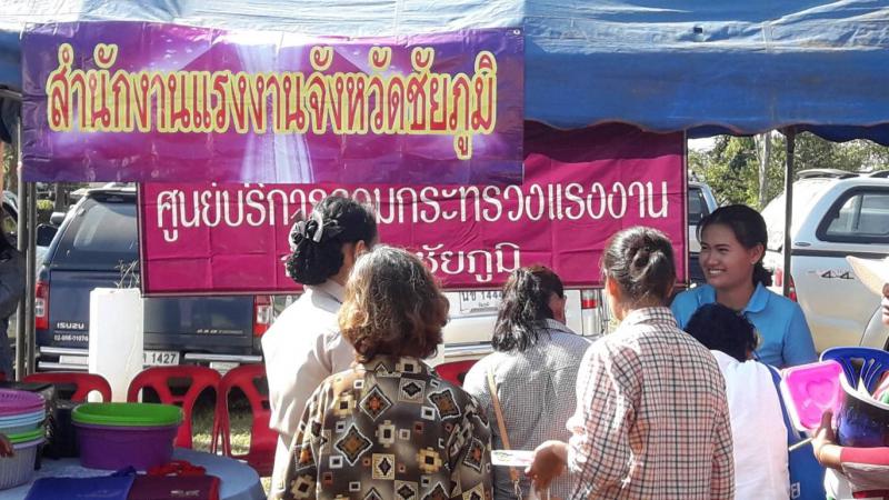 หัวหน้าส่วนหน่วยงานในสังกัดกระทรวงแรงงานจังหวัดชัยภูมิออกพื้นที่ให้บริการประชาชน ตามโครงการจังหวัดเคลื่อนที่ ณ บ้านลาดชุมพล หมู่ที่ 1 ต.เจาทอง อ.ภักดีชุมพล จ.ชัยภูมิ โดยมีท่านรองผู้ว่าราชการจังหวัดชัยภูมิ นายสมเกียรติ ศรีษะเนตร ให้เกียรติเป็นประธานในพิธี ในส่วนสำนักงานแรงงานจังหวัดชัยภูมิ นำโดยท่านแรงงานจังหวัดชัยภูมิ นางสาวอิสรี วีรกุลพิพัฒน์ ต่างตระหนักถึงเรื่องการออกให้บริการประชาชนที่อยู่ห่างไกลให้ได้รับบริการอย่างทั่วถึงในครั้งนี้ด้วยดี