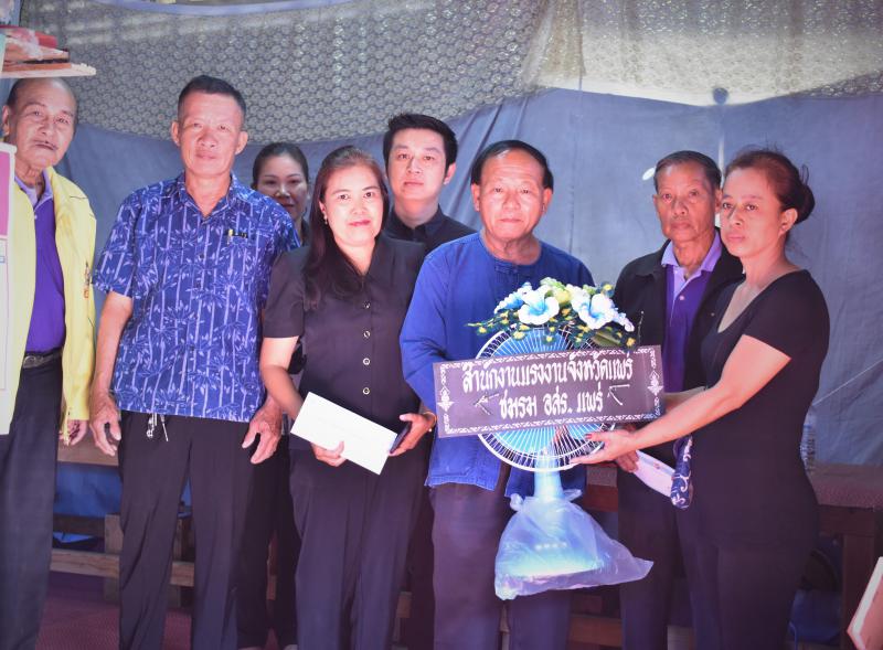 "อสร.แพร่ ห่วงใย ใส่ใจ ไม่ทิ้งกัน" วันนี้ 21 ธันวาคม 2561 นางสาวปราณี ชลารักษ์ แรงงานจังหวัดแพร่ มอบหมายให้นายชูเกียรติ สารดี (นักวิชาการแรงงานชำนาญการ) ร่วมกับอาสาสมัครแรงงานจังหวัดแพร่ เป็นเจ้าภาพวางหรีดงานศพคุณธงไชย หาธรรมมี อาสาสมัครแรงงาน ตำบลเด่นชัย อำเภอเด่นชัย จังหวัดแพร่