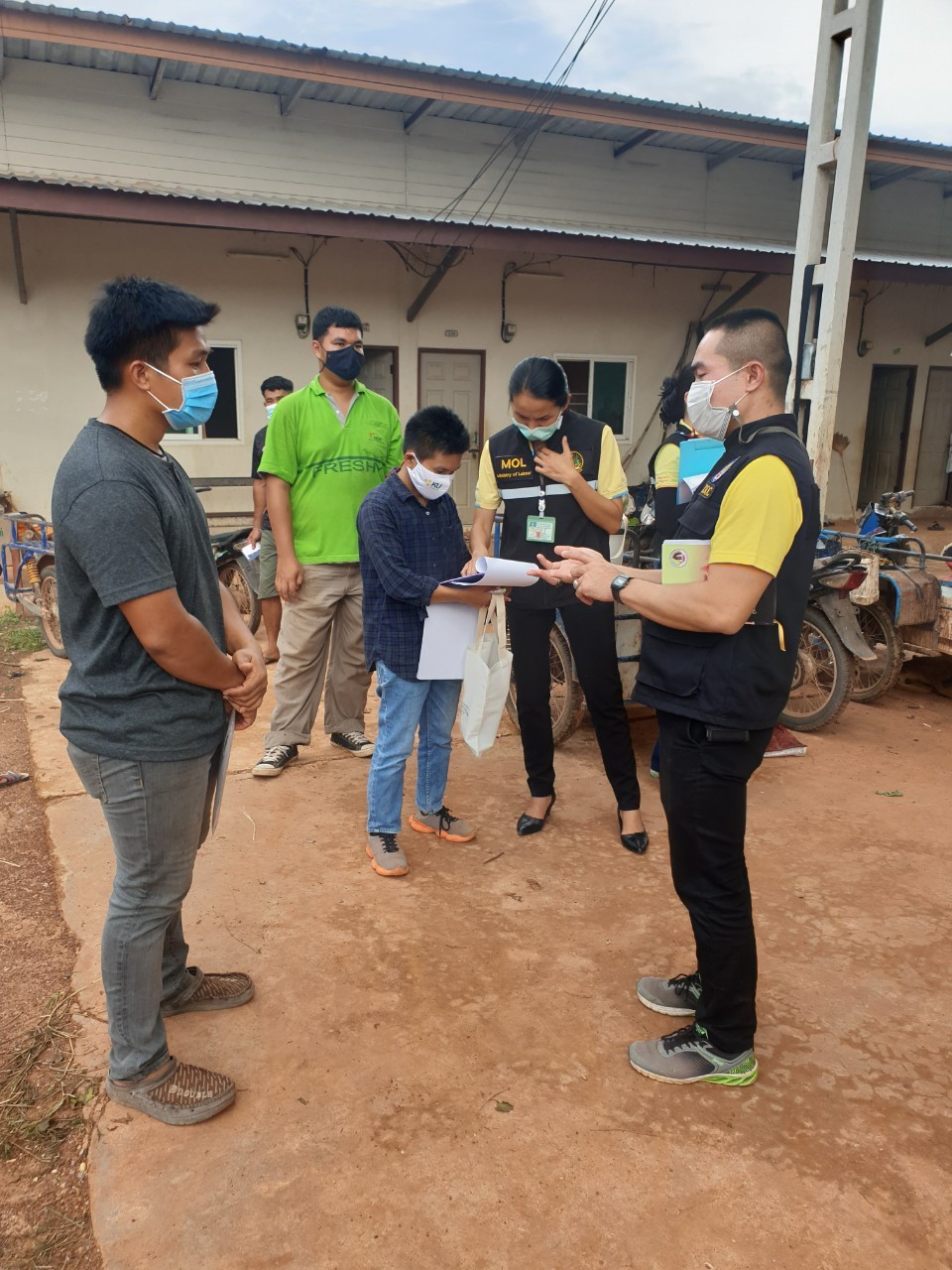 วันที่ 11 มิถุนายน 2564 หน่วยงานในสังกัดกระทรวงแรงงานจังหวัดนครพนม ร่วมกับ กองอำนวยการรักษาความมั่นคงภายในจังหวัดนครพนม ออกตรวจบูรณาการตรวจสอบการทำงานของแรงงานต่างด้าวภายใต้มาตรการการป้องกันการแพร่ระบาดของโรคติดเชื้อโคโรน่า 2019 (Covid-19) เพื่อป้องกันการเคลื่อนย้ายแรงงนเข้ามาในพื้นที่จังหวัดนครพนมในช่วงสถานการณ์การแพร่ระบาดของโรคติดเชื้อไวรัสโคโรนา 2019 และ เร่งรัดออกใบอนุญาตทำงานให้กับแรงงานต่างด้าวตามมติคณะรัฐมนตรีเมื่อวันที่ 29 ธันวาคม 2563 ประกอบ มติคณะรัฐมนตรีเมื่อวันที่ 26 มกราคม 2564 ณ กิจการประเภทเกษตรและปศุสัตว์ (สวนยางพารา) ในพื้นที่ อำเภอท่าอุทน จังหวัดนครพนม จำนวน 1 แห่ง จำนวนลูกจ้างรวม 51 คน เป็นแรงงานต่างด้าวสัญชาติลาว ทั้งหมด ทั้งนี้ ได้มอบหน้ากากอนามัยให้กับตัวแทนนายจ้างและลูกจ้างในสถานประกอบการ