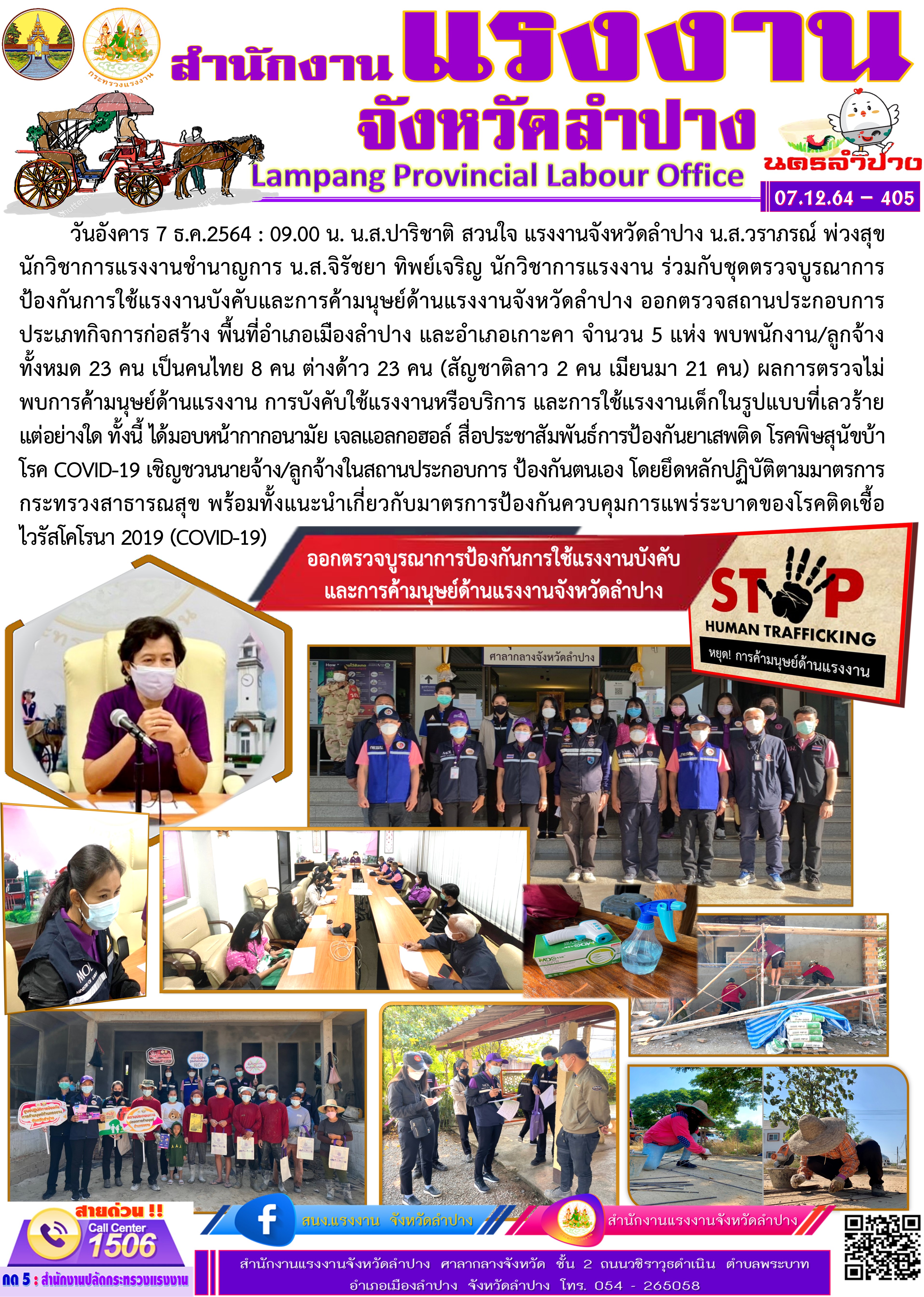 สรจ.ลำปาง ออกตรวจบูรณาการป้องกันการใช้แรงงานบังคับและการค้ามนุษย์ด้านแรงงานจังหวัดลำปาง