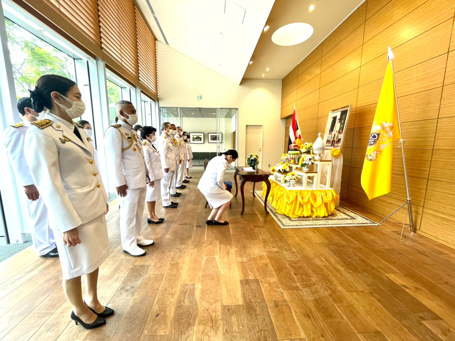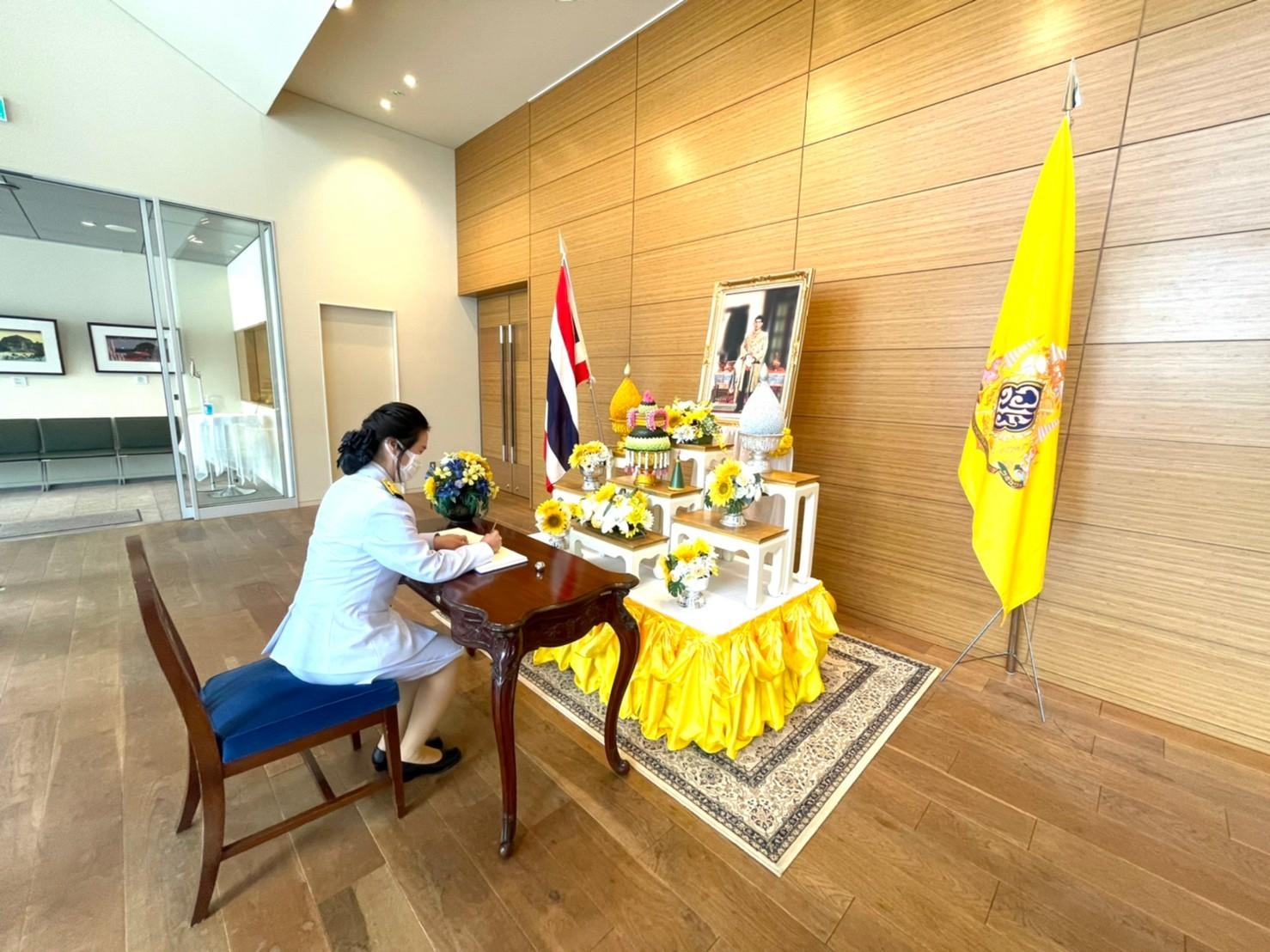 เมื่อวันที่ 28 เมษายน 2565 เวลาประมาณ 10.30 น. (ตามเวลาท้องถิ่นประเทศญี่ปุ่นซึ่งเร็วกว่าประเทศไทย 2 ชั่วโมง) นางสาวสดุดี กิตติสุวรรณ อัครราชทูตที่ปรึกษา (ฝ่ายแรงงาน) สำนักงานแรงงานในประเทศญี่ปุ่น ได้ร่วมการลงนามถวายพระพรชัยมงคลเนื่องในโอกาสวันฉัตรมงคล ณ บริเวณหน้าหอประชุมสถานเอกอัครราชทูต ณ กรุงโตเกียว