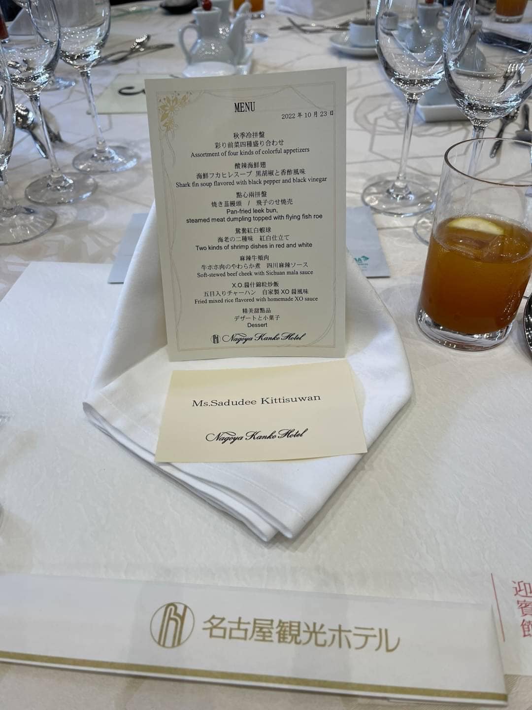 จากนั้นทีมประเทศไทยได้เข้าร่วมงานเลี้ยงอาหารกลางวัน ที่โรงแรม Wakamiyanomori, Geihinkan จัดโดยนาย MIWA Yoshihiro กงสุลใหญ่กิตติมศักดิ์ ณ เมืองนาโกยา