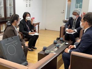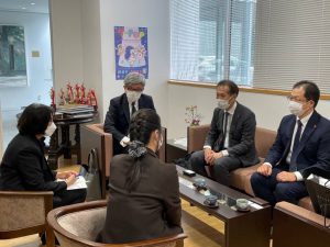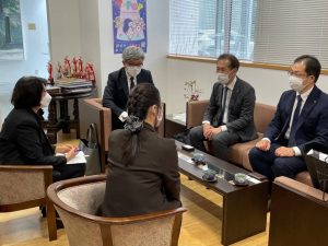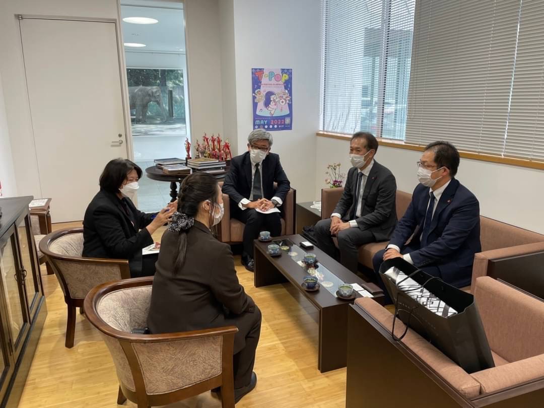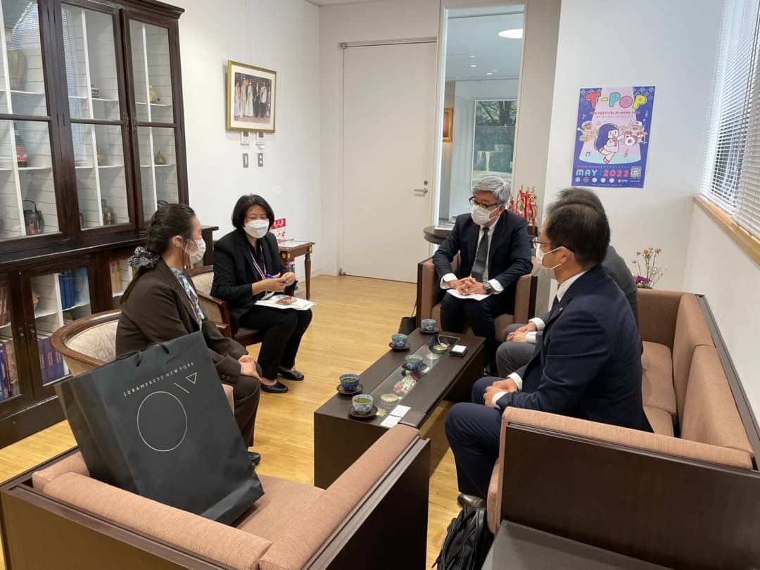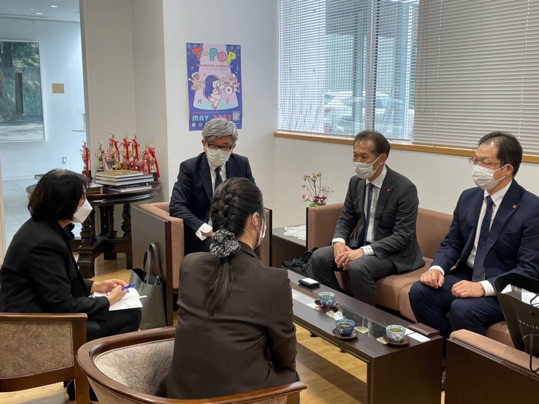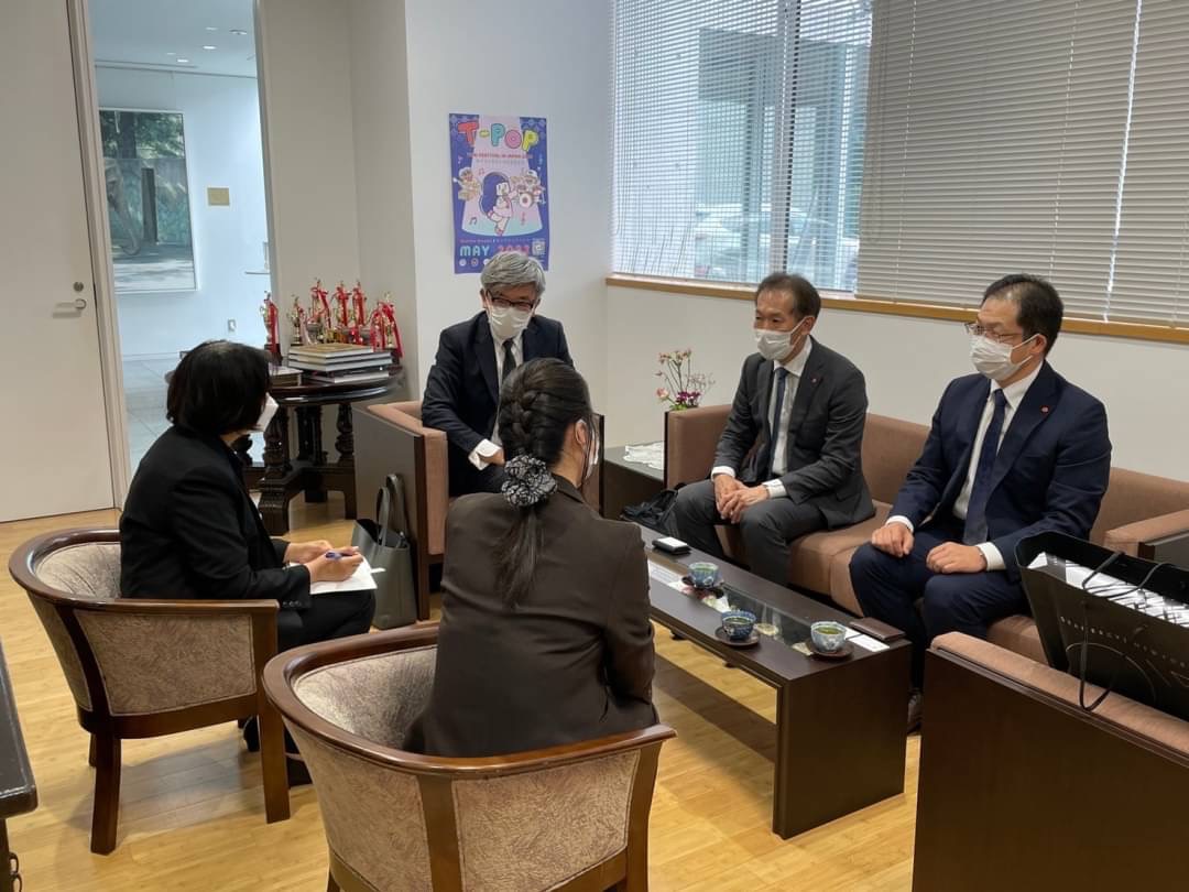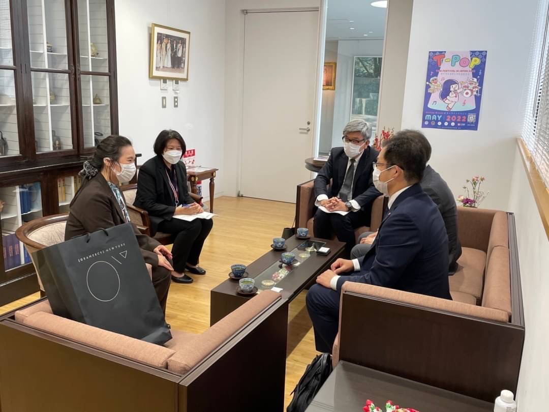 เมื่อวันที่ 10 มิถุนายน 2565 เวลา 11.00 น ตามเวลาท้องถิ่นประเทศญี่ปุ่น (เร็วกว่าประเทศไทย 2 ชั่วโมง) นางสาวสดุดี กิตติสุวรรณ อัครราชทูตที่ปรึกษา (ฝ่ายแรงงาน) สำนักงานแรงงานในประเทศญี่ปุ่นให้การต้อนรับ Mr. Akiyoshi Sonobe ตำแหน่ง President ของ Kanemi Co., Ltd. Mr. Kiwamu Nakata ตำแหน่ง Executive Officer and Business Management ของ Kanemi Co., Ltd. และ Mr.Yasuo Mono ตำแหน่ง Director ขององค์กรผู้รับ Ai Family Cooperative Society ณ ห้องรับรองสถานเอกอัครราชทูต ณ กรุงโตเกียว