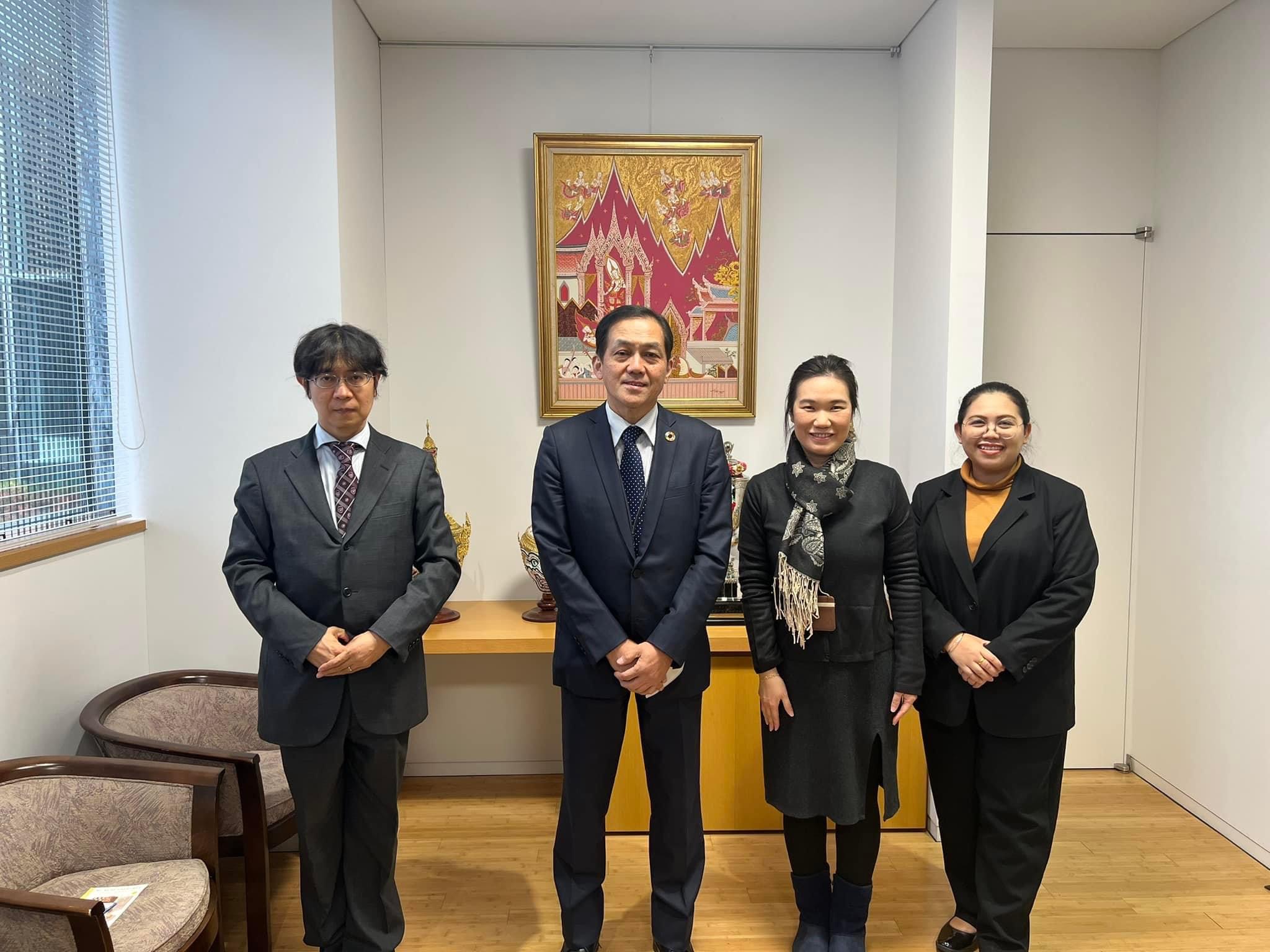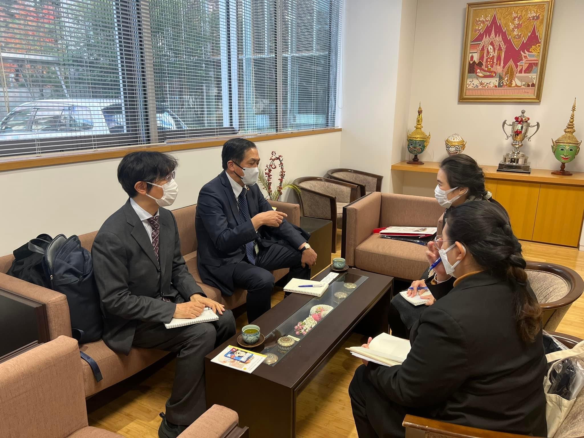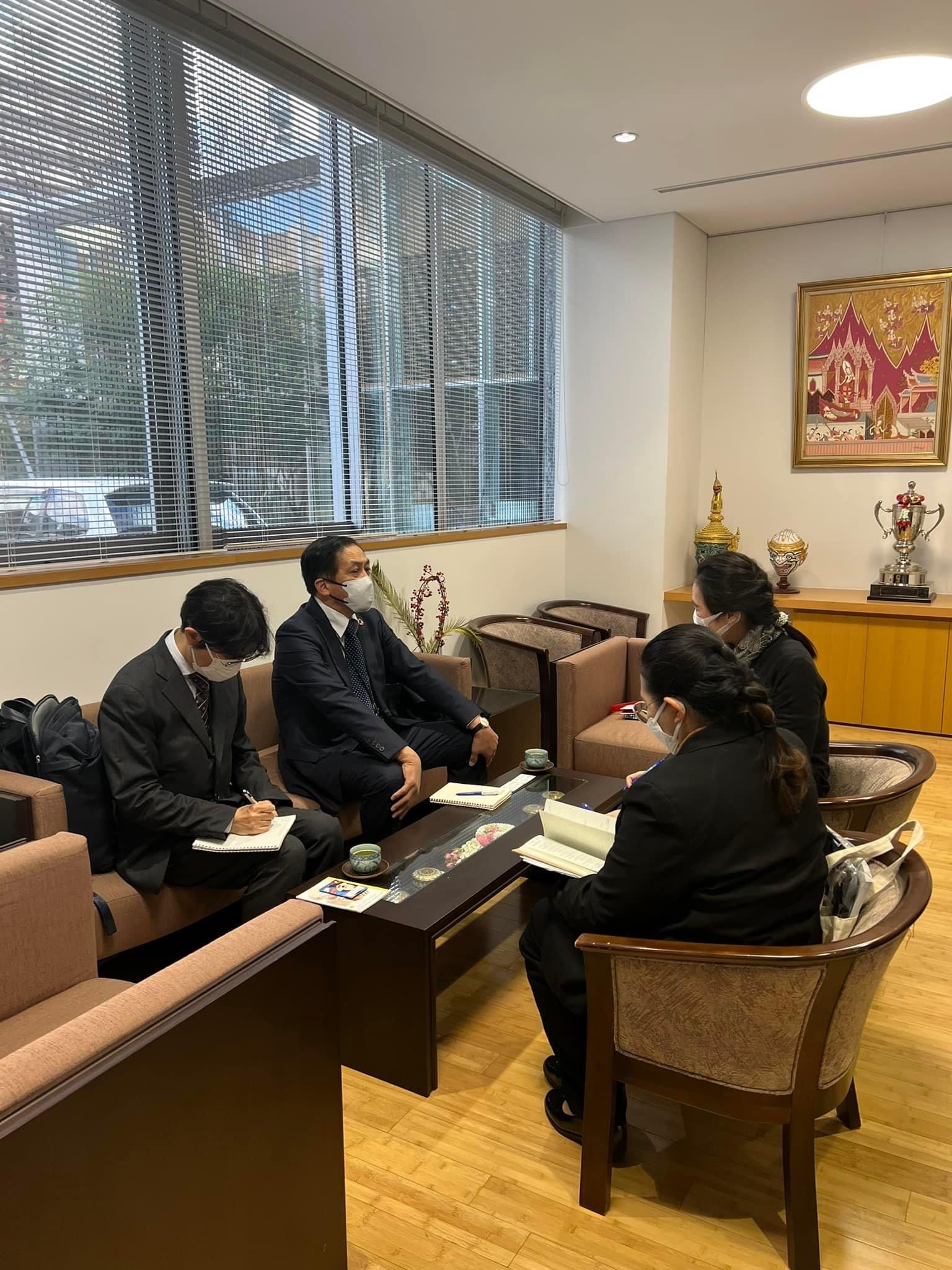 เมื่อวันที่ 22 ธันวาคม 2565 เวลา 14.30 – 15.45 น. (เวลาท้องถิ่นประเทศญี่ปุ่น ซึ่งเร็วกว่าประเทศไทย 2 ชั่วโมง) นางสาวสดุดี กิตติสุวรรณ อัครราชทูตที่ปรึกษา (ฝ่ายแรงงาน) สำนักงานแรงงานในประเทศญี่ปุ่น พร้อมด้วยนางสาวเกศสุดา มงคลชาติ ที่ปรึกษา (ฝ่ายแรงงาน) ให้การต้อนรับ Mr. TAKASAKI Shinichi ตำแหน่ง Director, ILO Office for Japan (องค์การแรงงานระหว่างประเทศ (International Labour Organization: ILO) สำนักงานประเทศญี่ปุ่น) และ Mr. SUDO Sho ตำแหน่ง Deputy Director General, Skills Promotion Department, Japan Vocational Ability Development Association (JAVADA) ซึ่งเคยดำรงตำแหน่งใน ILO Regional Office for Asia and the Pacific ณ ห้องรับรอง ชั้น 1 สถานเอกอัครราชทูต ณ กรุงโตเกียว