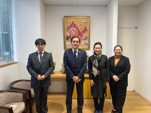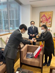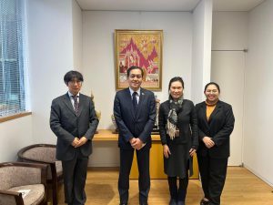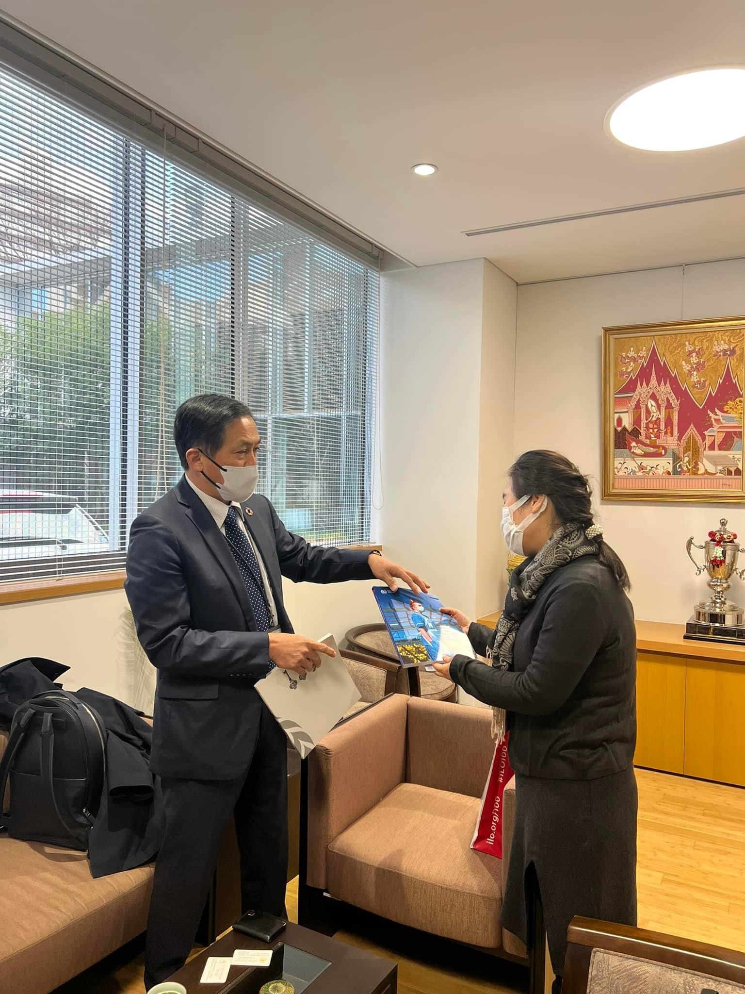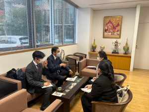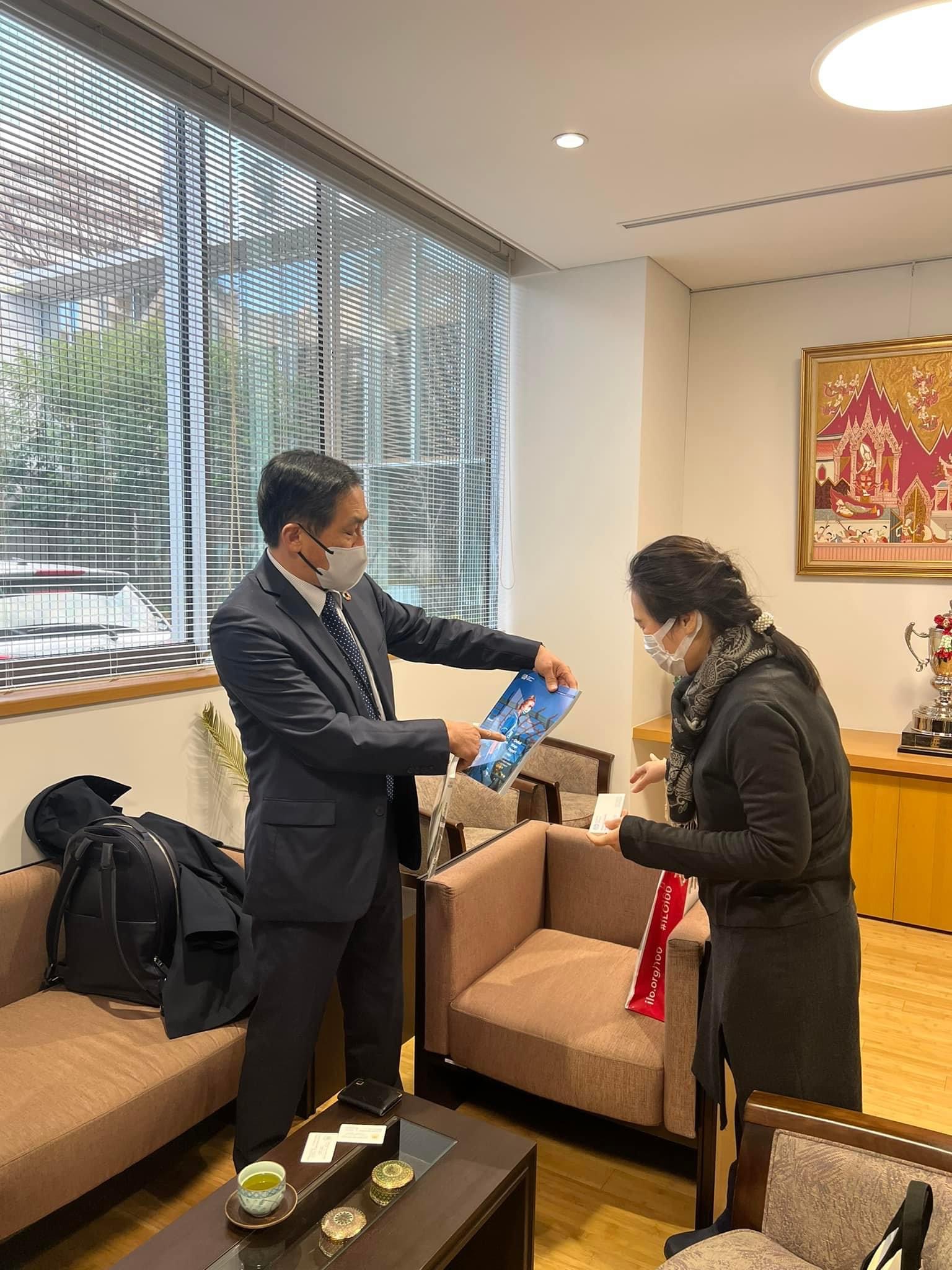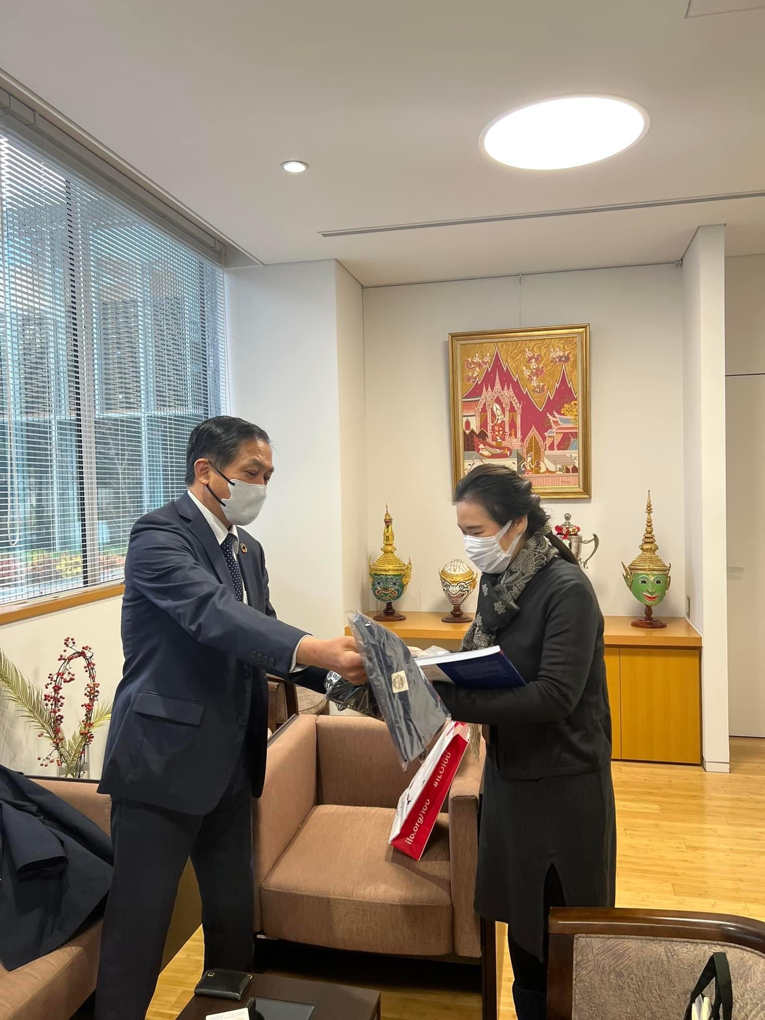 เมื่อวันที่ 22 ธันวาคม 2565 เวลา 14.30 – 15.45 น. (เวลาท้องถิ่นประเทศญี่ปุ่น ซึ่งเร็วกว่าประเทศไทย 2 ชั่วโมง) นางสาวสดุดี กิตติสุวรรณ อัครราชทูตที่ปรึกษา (ฝ่ายแรงงาน) สำนักงานแรงงานในประเทศญี่ปุ่น พร้อมด้วยนางสาวเกศสุดา มงคลชาติ ที่ปรึกษา (ฝ่ายแรงงาน) ให้การต้อนรับ Mr. TAKASAKI Shinichi ตำแหน่ง Director, ILO Office for Japan (องค์การแรงงานระหว่างประเทศ (International Labour Organization: ILO) สำนักงานประเทศญี่ปุ่น) และ Mr. SUDO Sho ตำแหน่ง Deputy Director General, Skills Promotion Department, Japan Vocational Ability Development Association (JAVADA) ซึ่งเคยดำรงตำแหน่งใน ILO Regional Office for Asia and the Pacific ณ ห้องรับรอง ชั้น 1 สถานเอกอัครราชทูต ณ กรุงโตเกียว