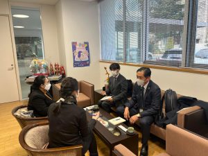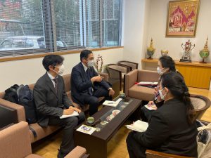 นางสาวสดุดีฯ ได้กล่าวต้อนรับและขอบคุณ Mr. TAKASAKI Shinichi และ Mr. SUDO Sho ที่ได้สละเวลามาพบหารือกับสำนักงานแรงงานในประเทศญี่ปุ่นในวันนี้ ซึ่งนับเป็นการพบกันกับผู้แทน ILO สำนักงานประเทศญี่ปุ่น โดยทั้งสองฝ่ายได้หารือและแลกเปลี่ยนความคิดเห็นร่วมกันในประเด็นด้านแรงงานที่เกี่ยวข้อง เช่น ความคืบหน้าการปรับปรุงระบบผู้ฝึกปฏิบัติงานด้านเทคนิค (Technical Intern Training Program: TITP) และระบบแรงงานทักษะเฉพาะ (Specified Skilled Workers: SSW) ของรัฐบาลญี่ปุ่น เนื่องจากปัญหาด้านสิทธิมนุษยชนและปัญหาการขาดแคลนแรงงานของญี่ปุ่น Mr. TAKASAKI คาดว่าจะมีการรายงานครั้งสุดท้ายของคณะผู้เชี่ยวชาญและเสนอแก้ไขกฎหมายที่เกี่ยวข้องภายในปี พ.ศ. 2566 และคาดว่าญี่ปุ่นจะเริ่มดำเนินการระบบใหม่ได้ในปี พ.ศ. 2567