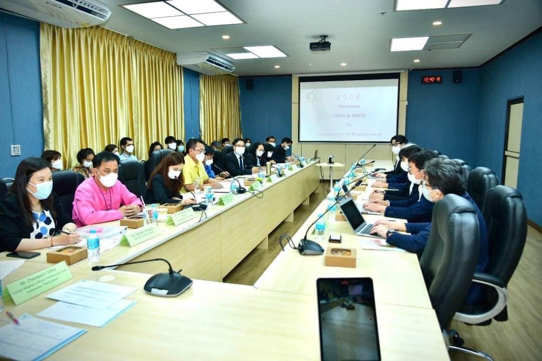 วันที่ 1 กรกฎาคม 2565 เวลา 13.30 น. นางสาวสดุดี กิตติสุวรรณ อัครราชทูตที่ปรึกษา (ฝ่ายแรงงาน) สำนักงานแรงงานในประเทศญี่ปุ่น นำ Mr.Hiroshi HORIGUCHI (นายฮิโรชิ โฮริกุจิ) กรรมการผู้จัดการสมาคมทำความสะอาดภายในอาคารแห่งประเทศญี่ปุ่น (Japan Building Maintenance Association: JBMA) และศูนย์สนับสนุนการรับชาวต่างชาติที่มีความสามารถพิเศษ (Acceptance Support Center for Foreign Talent: ASCF) และคณะ พบหารือเกี่ยวกับการดำเนินการรับสมัครและคัดเลือกแรงงานทักษะฝีมือคนไทยเพื่อไปทำงานในประเทศญี่ปุ่นกับกรมการจัดหางาน โดยมีนายสันติ นันตสุวรรณ รองอธิบดีกรมการจัดหางาน เป็นประธานการประชุมฯ ฝ่ายไทย ณ ห้องประชุมกองบริหารแรงงานไทยไปต่างประเทศ ชั้น 10 อาคารสำนักงานประกันสังคมกรุงเทพมหานครพื้นที่ 3 กระทรวงแรงงาน และมีนายสิบหมื่นชัย โพธิสินธุ์ ผู้ตรวจราชการกรม กรมการจัดหางาน พร้อมด้วยนายโอวาท ทองบ่อมะกรูด ผู้อำนวยการกองบริหารแรงงานไทยไปต่างประเทศ ข้าราชการ และหน้าที่ที่เกี่ยวข้องร่วมประชุม