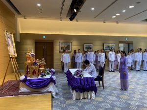 นายสายชล อกนิษฐวงศ์ อัครราชทูตที่ปรึกษา (ฝ่ายแรงงาน) สำนักงานแรงงานในประเทศญี่ปุ่น พร้อมคู่สมรส ได้เข้าร่วมพิธีลงนามถวายพระพรเนื่องในโอกาสวันเฉลิมพระชนมพรรษาสมเด็จฯ พระนางเจ้า พระบรมราชินี ณ หอประชุม สถานเอกอัครราชทูต ณ กรุงโตเกียว ในวันพุธที่ 3 มิถุนายน 2563 เวลา 10.00 – 11.00 น.