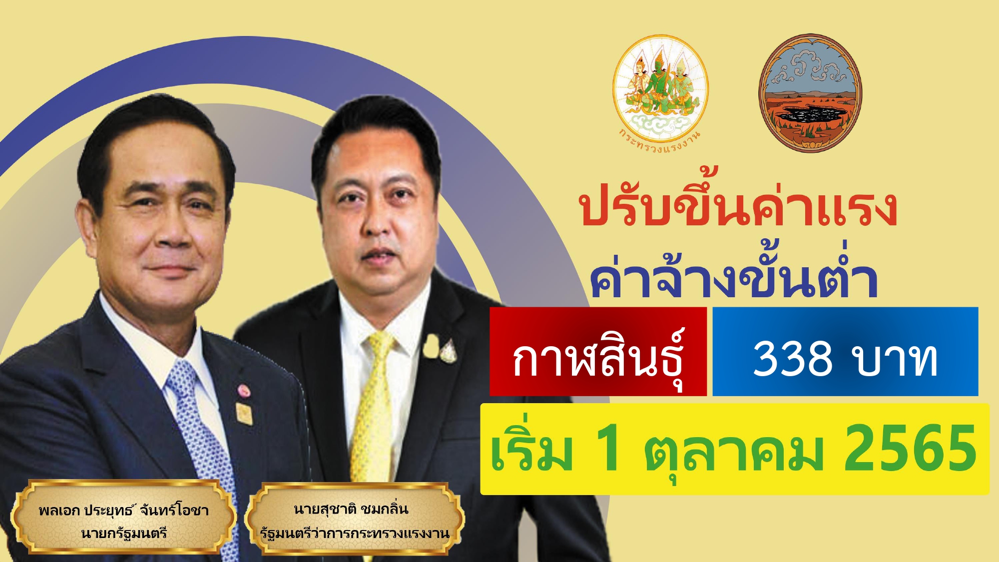 อัตราค่าจ้างขั้นต่ำ จังหวัดกาฬสินธุ์ 338 บาท มีผลบังคับใช้ 1 ตุลาคม 2565 เป็นต้นไป