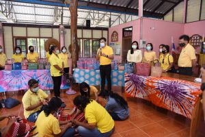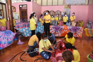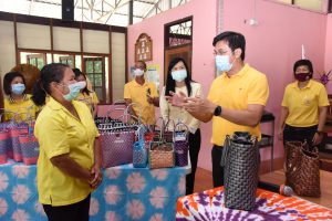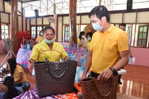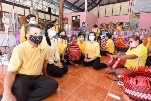 วันที่ 19 กรกฎาคม 2563 เวลา 13.00 น. รองศาสตราจารย์ ดร.จักษ์ พันธ์ชูเพชร ที่ปรึกษารัฐมนตรีว่าการกระทรวงแรงงาน เยี่ยมชมดูงานกลุ่มผลิตเครื่องจักสานผลิตภัณฑ์กระเป๋า ตระกร้าสาน ซึ่งผลิตโดยอาสาสมัครแรงงาน และผู้ประกันตนมาตรา 40 จากหมู่ 8 ตำบลท่ากุ่ม จำนวน 20 คน ที่เป็นการต่อยอดจากไม้ไผ่ หวาย มาเป็นการสานตระกร้าโดยใช้เส้นพลาสติก ที่มีการประดิษฐ์ลวดลายตระกร้าขึ้นใหม่ และออกแบบตระกร้าสำหรับใส่ทุเรียน ที่จะผลิตขายตามออเดอร์เท่านั้น เนื่องจากทางกลุ่มขาดทุนในการผลิตจำนวนมากๆ เพื่อเก็บไว้ขาย โดยที่ปรึกษารัฐมนตรีว่าการกระทรวงแรงงาน ได้แนะนำให้รวมกันเป็นกลุ่ม และให้ขอรับการดูจากกระทรวงแรงงานในส่วนของโครงการการรับงานไปทำที่บ้าน พร้อมทั้งให้ขายผ่านช่องทางออนไลน์ และทำคลิปเบื้องหลังขั้นตอนของการสานตระกร้า เพื่อให้ผู้เข้าชมเกิดความน่าสนใจและเกิดการสั่งซื้อสินค้าจากทางกลุ่ม รวมถึงให้ผลิตตระกร้าที่มีช่องใส่ของเป็นซิปด้านในป้องกันสิ่งของในตระกร้าไม่ให้เกิดการเสียหาย อีกทั้งให้ทางกลุ่มเข้าฝึกอบรมอาชีพกับทางกรมพัฒนาฝีมือแรงงาน เพื่อจะได้นำเอาโลโก้กระทรวงแรงงานไปใช้ใส่ในป้ายชื่อของกลุ่มที่อยู่ด้านในตระกร้า ซึ่งจะทำให้เกิดความน่าเชื่อถือในฝีมือการสานตระกร้า ซึ่งเป็นหนึ่งในนโยบายของ หม่อมราชวงศ์จัตุมงคล โสณกุล รัฐมนตรีว่าการกระทรวงแรงงาน ที่ให้ไว้ ณ บ้านเขาพลู ตำบลท่ากุ่มอำเภอเมือง จังหวัดตราด