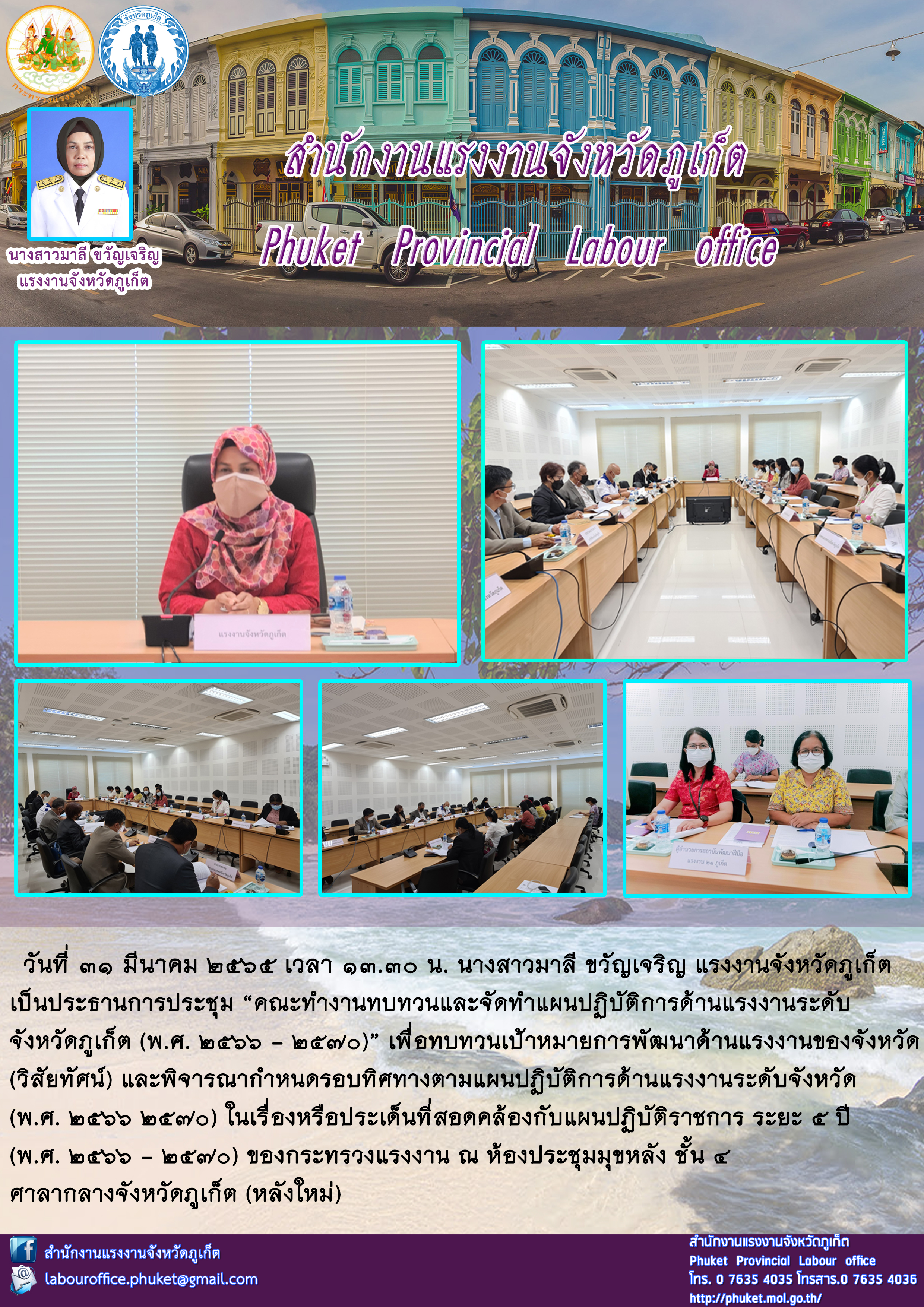 แรงงานจังหวัดภูเก็ต เป็นประธานการประชุม “คณะทำงานทบทวนและจัดทำแผนปฏิบัติการด้านแรงงานระดับ จังหวัดภูเก็ต (พ.ศ. 2566 – 2570)”