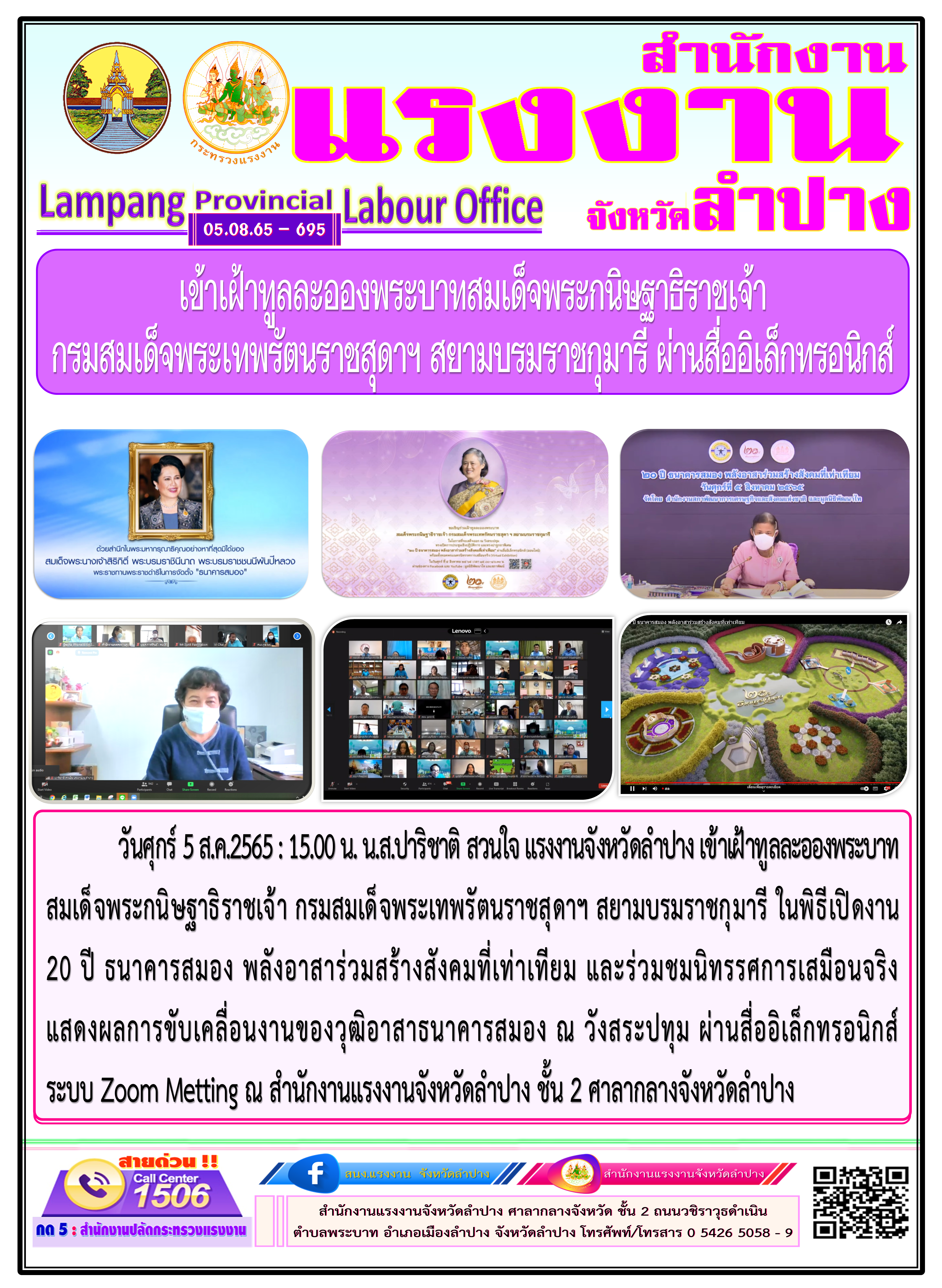 แรงงานจังหวัดลำปาง ร่วมเข้าเฝ้าทูลละอองพระบาทสมเด็จพระกนิษฐาธิราชเจ้า กรมสมเด็จพระเทพรัตนราชสุดาฯ สยามบรมราชกุมารี