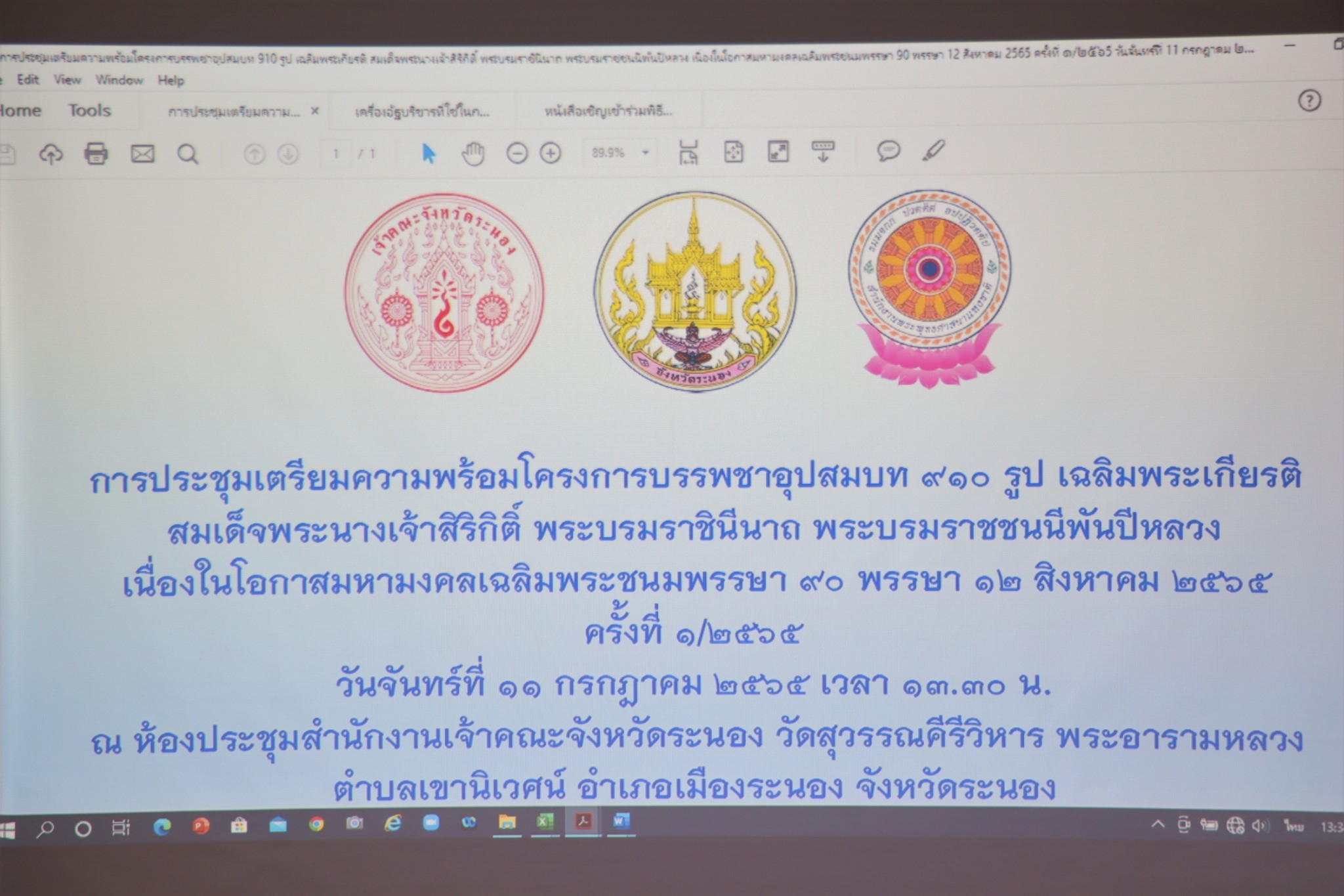 สรจ.ระนอง เตรียมการจัดพิธีบรรพชาอุปสมบท 910 รูป เฉลิมพระเกียรติสมเด็จพระนางเจ้า สิริกิติ์พระบรมราชินีนาถ พระบรมราชชนนีพันปีหลวง เนื่องในโอกาสมหามงคลเฉลิมพระชนมพรรษา 90 พรรษา 12 สิงหาคม 2565