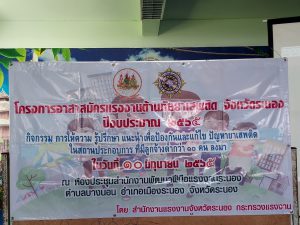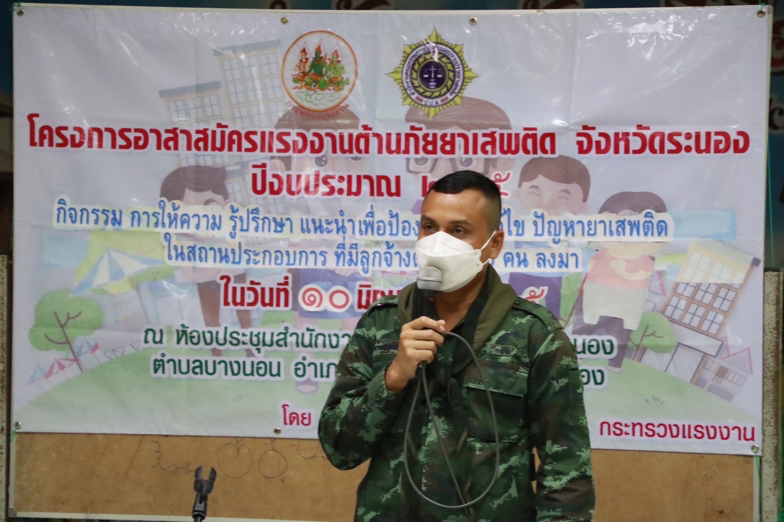 สรจ.ระนอง เปิดโครงการอาสาสมัครแรงงานต้านภัยยาเสพติด กิจกรรมให้ความรู้ ปรึกษา แนะนำ เพื่อป้องกันและแก้ไขปัญหายาเสพติดในสถานประกอบการที่มีลูกจ้างต่ำกว่า 10 คนลงมา จังหวัดระนอง