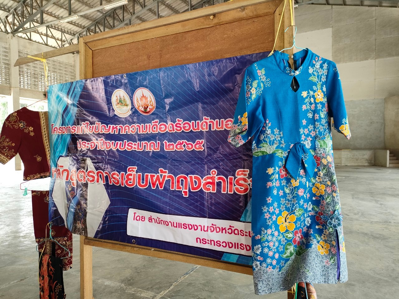 สรจ.ระนอง เปิดโครงการแก้ไขปัญหาความเดือดร้อนด้านอาชีพกระทรวงแรงงาน ประจำปีงบประมาณ พ.ศ.2565 กิจกรรมพัฒนาทักษะฝืมือแรงงาน (ฝึกอาชีพ) สาขา/หลักสูตร การตัดเย็บผ้าถุงสำเร็จ