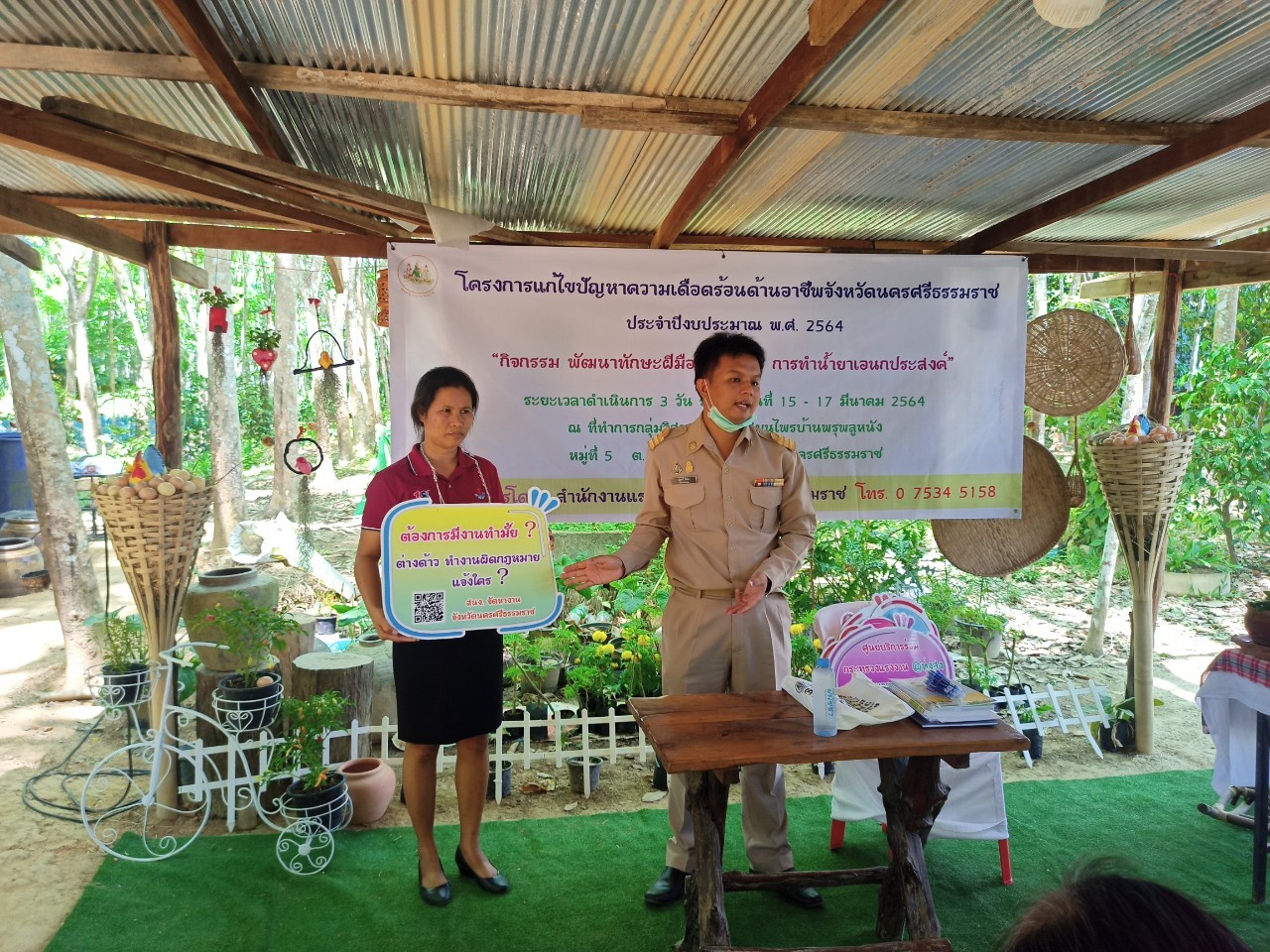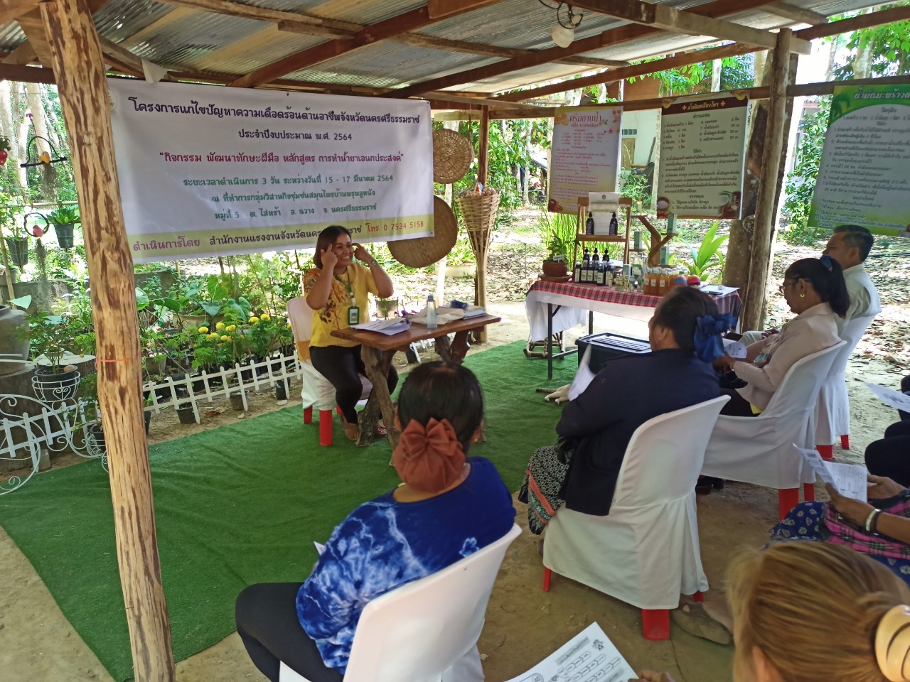 วันที่ 15 มีนาคม 2564 นายบุญลอย เขียดนิล แรงงานจังหวัดนครศรีธรรมราช มอบหมายให้นายณัฐพงษ์ รัติโชติ นักวิชาการแรงงานปฏิบัติการ และนางจิราภรณ์ ศรีหะรัญ เจ้าพนักงานการเงินและบัญชีชำนาญงาน เปิดโครงการแก้ไขปัญหาความเดือดร้อนด้านอาชีพ จังหวัดนครศรีธรรมราช ประจำปีงบประมาณ พ.ศ.2564 กิจกรรมพัฒนาทักษะฝีมือแรงงาน การทำน้ำยาเอนกประสงค์ ดำเนินการระหว่างวันที่ 15 – 17 มีนาคม 2564 ณ หมู่ที่ 5 ต.ไสหร้า อ.ฉวาง จ.นครศรีธรรมราช