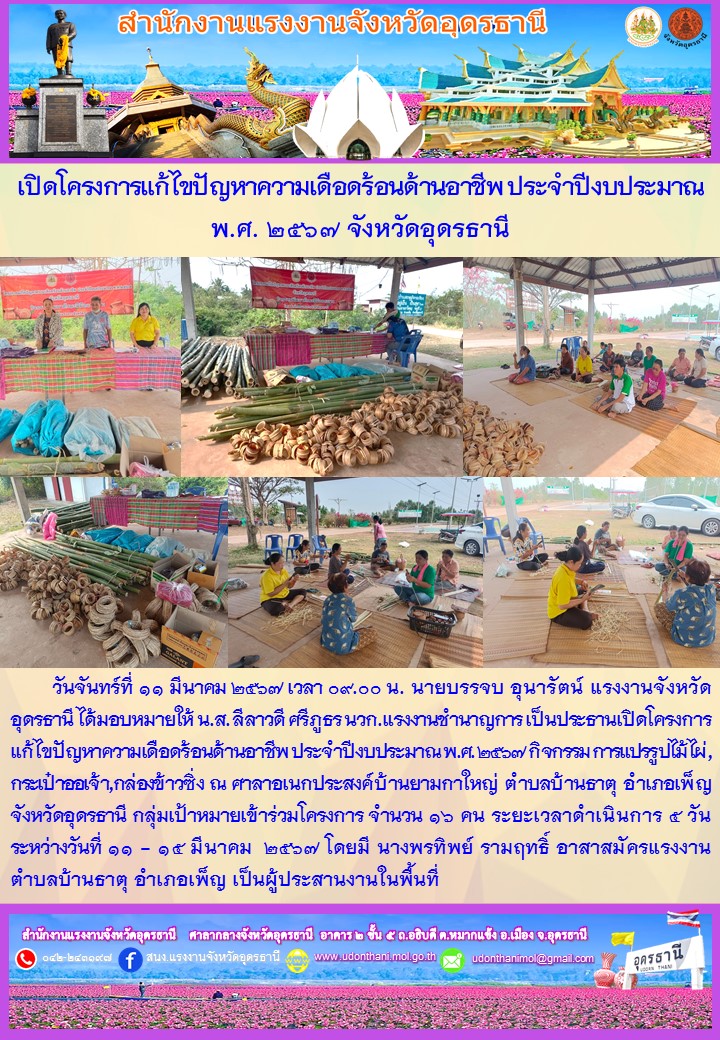 สรจ.อุดรธานี เปิดโครงการแก้ไขปัญหาความเดือดร้อนด้านอาชีพ ประจำปีงบประมาณ พ.ศ. 2567 จังหวัดอุดรธานี