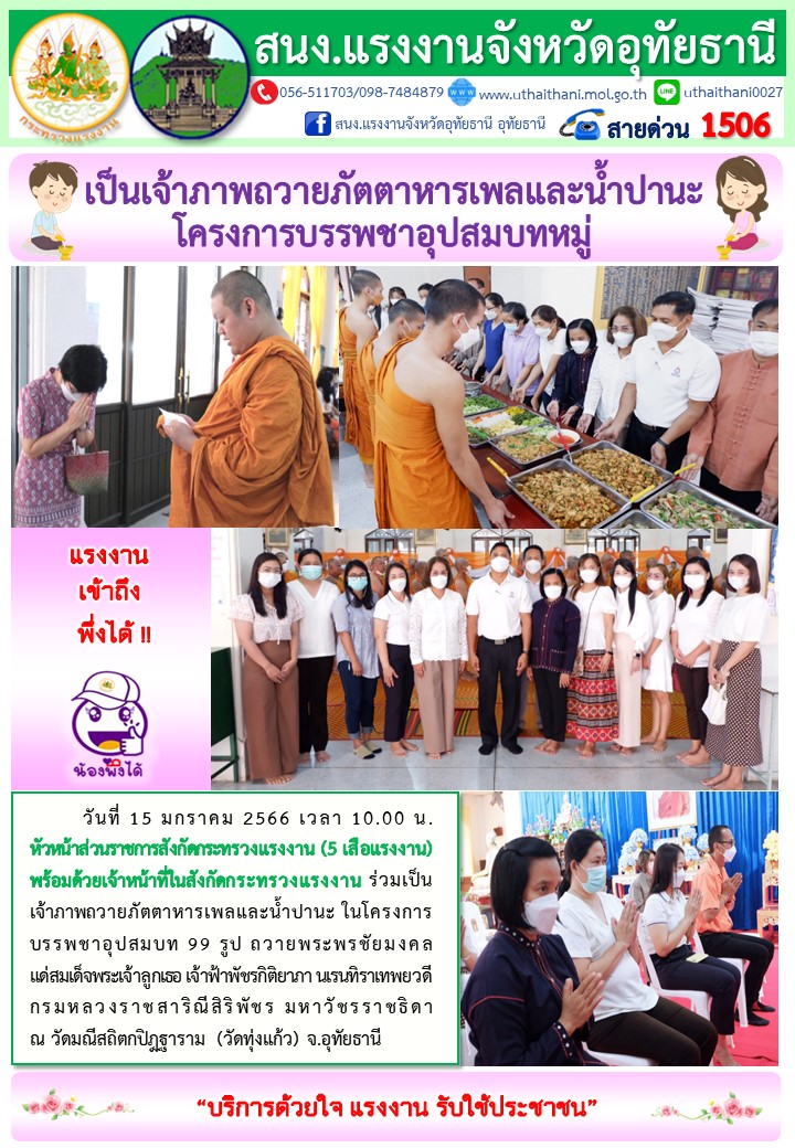 สรจ.อุทัยธานี เป็นเจ้าภาพถวายภัตตาหารเพลและน้ำปานะ โครงการบรรพชาอุปสมบทหมู่