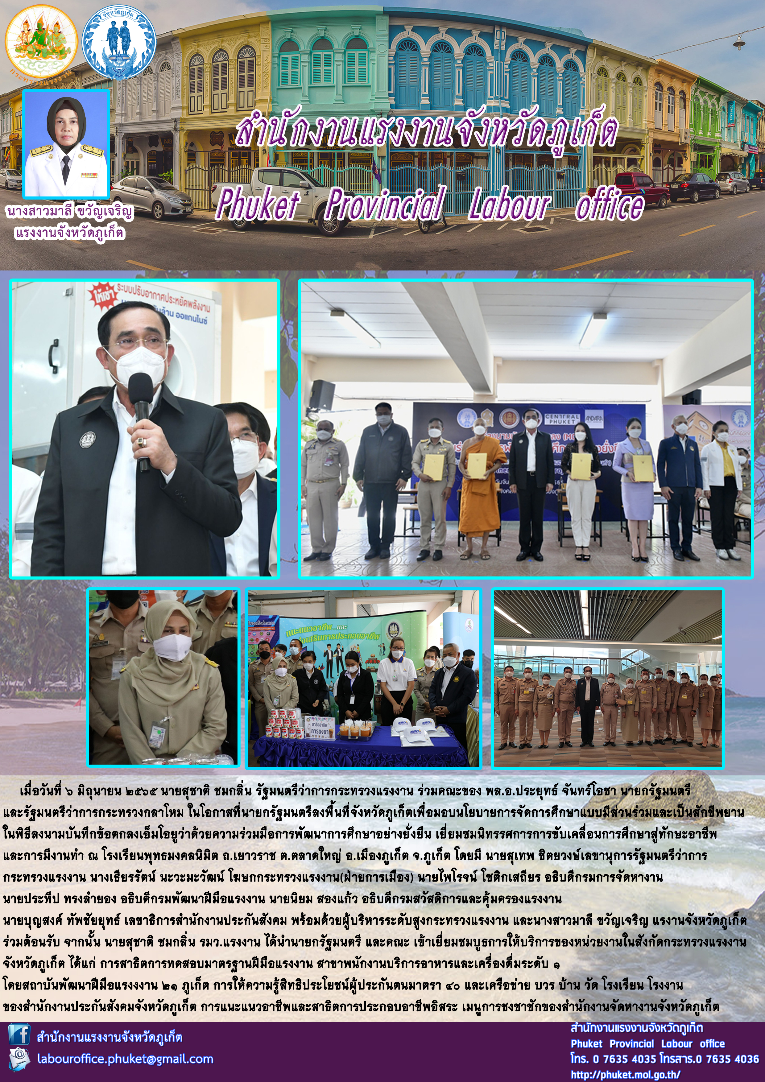 นายสุชาติ ชมกลิ่น รัฐมนตรีว่าการกระทรวงแรงงาน ร่วมคณะของพล.อ.ประยุทธ์ จันทร์โอชา นายกรัฐมนตรีและรัฐมนตรีว่าการกระทรวงกลาโหม ในโอกาสที่นายกรัฐมนตรีลงพื้นที่จังหวัดภูเก็ต
