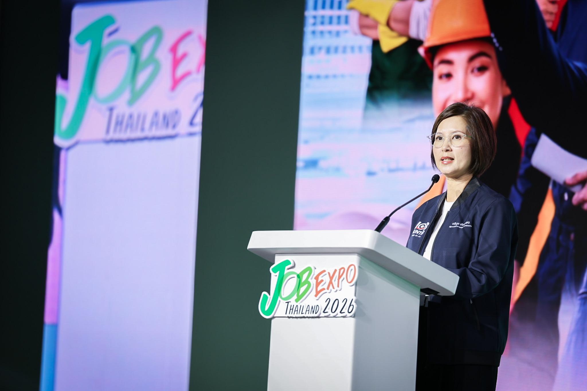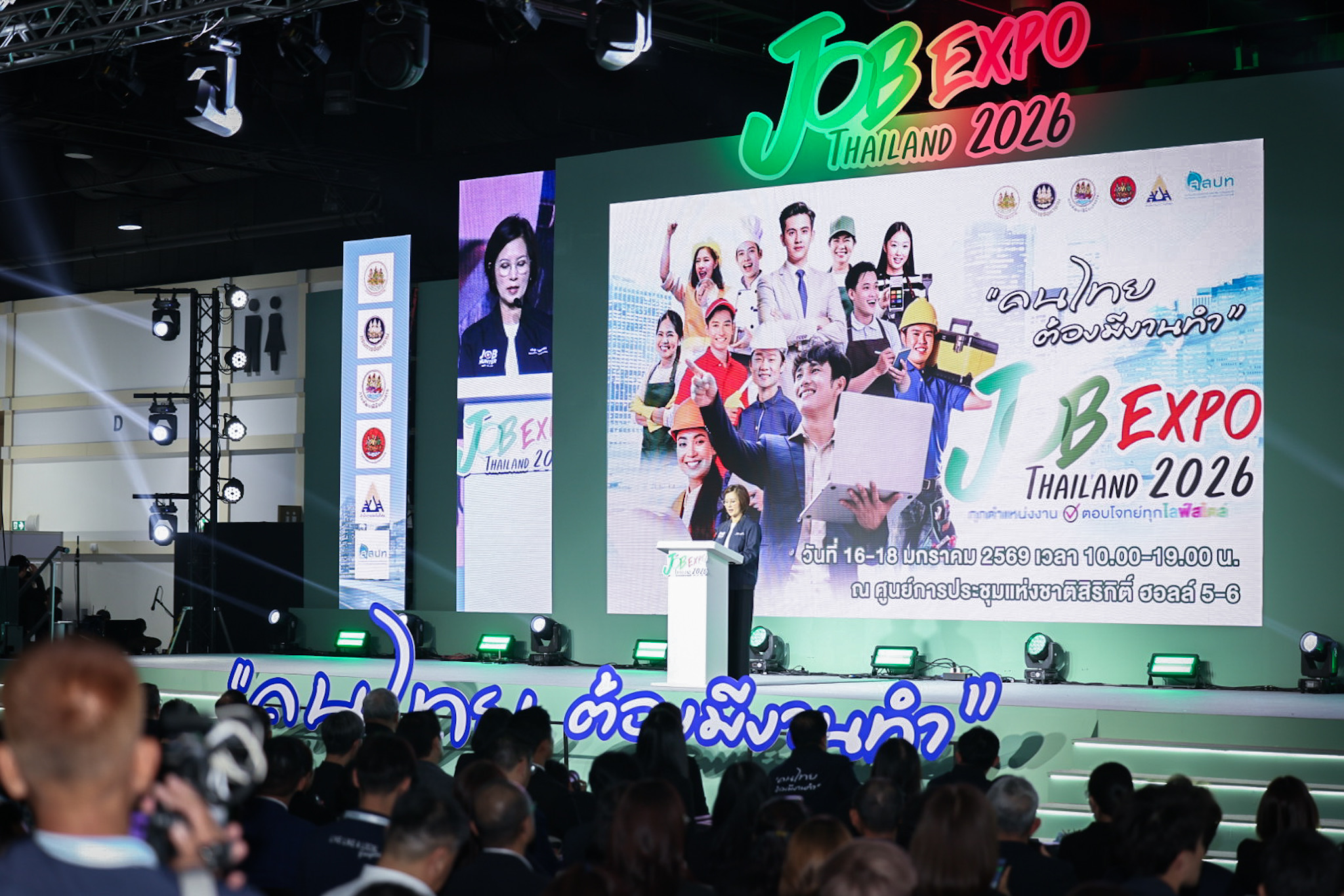 วันที่ 16 มกราคม 2569 นางสาวตรีนุช เทียนทอง รัฐมนตรีว่าการกระทรวงแรงงาน เปิดงาน JOB EXPO THAILAND 2026 มหกรรมจัดหางานครั้งยิ่งใหญ่แห่งปี “ทุกตำแหน่งงาน ตอบโจทย์ทุกไลฟ์สไตล์” โดยมี พันตำรวจโท วรรณพงษ์ คชรักษ์ ปลัดกระทรวงแรงงาน ว่าที่ร้อยตรี สมศักดิ์ พรหมดำ ผู้ตรวจราชการกระทรวงแรงงาน นายสิบหมื่นชัย โพธิสินธุ์ ผู้ตรวจราชการกระทรวงแรงงาน นายเกริกไกร นาสมยนต์ ที่ปรึกษากฎหมาย นายณัฐวุฒิ ภัทรประยูร ที่ปรึกษาวิชาการแรงงาน นายศักดินาถ สนธิศักดิ์โยธิน ผู้ช่วยปลัดกระทรวงแรงงาน ผู้บริหารกระทรวงแรงงาน ร่วมเป็นเกียรติ นายสมชาย มรกตศรีวรรณ อธิบดีกรมการจัดหางาน กล่าวรายงานวัตถุประสงค์การจัดงาน ณ ศูนย์การประชุมแห่งชาติสิริกิติ์ ฮอลล์ 5 – 6 เขตคลองเตย กรุงเทพมหานคร