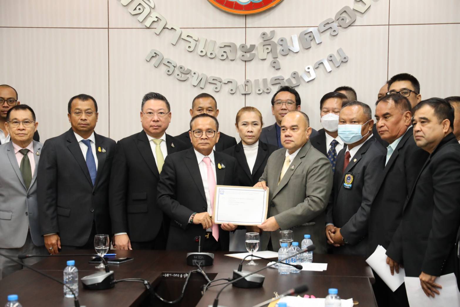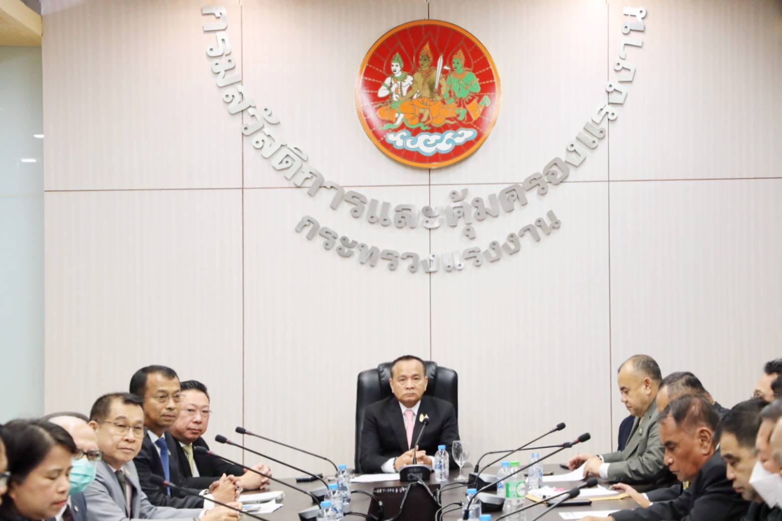 On December 6, 2023, at 09.00 hours, the Labour Minister, Mr. Phiphat Ratchakitprakarn, assigned the Secretariat to the Labour Minister, Mr. Aree Krainara, chaired the meeting to discuss and receive a letter from the Security Services Association of Thailand and 18 organizations affiliated with the security professional network. The group was led by the President of the Security Services Association of Thailand, Acting Lt. Col. Sittiporn Balthip, who paid a visit to submit a letter discussing labour law issues affecting security personnel, especially in the case of canceling the Ministerial Regulation specifying work in which employees are not entitled to receive overtime pay on holidays, 2009. The objective of the letter is for the Ministry of Labour to review the operations. It suggests looking at the labour skills standards by specifying the skill level of workers or setting employment regulations for providing lump sum payments according to workers’ skill levels. This will help develop and raise standards rather than amend or repeal the said law. The Labour Minister’s Advisor, Mr. Thanat Thaweekueakulkit, the Deputy Permanent Secretary of Labour, Mr. Wannarat Srisuksai, the Labour Minister’s working group, the Department of Labour Protection and Welfare’s Inspector-General, Ms. Sunan Petchu, and relevant officials participated. The occasion took place at the Labour Relations Committee meeting room, 1st floor, Department of Labour Protection and Welfare.
