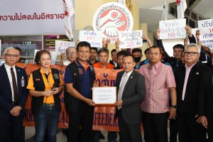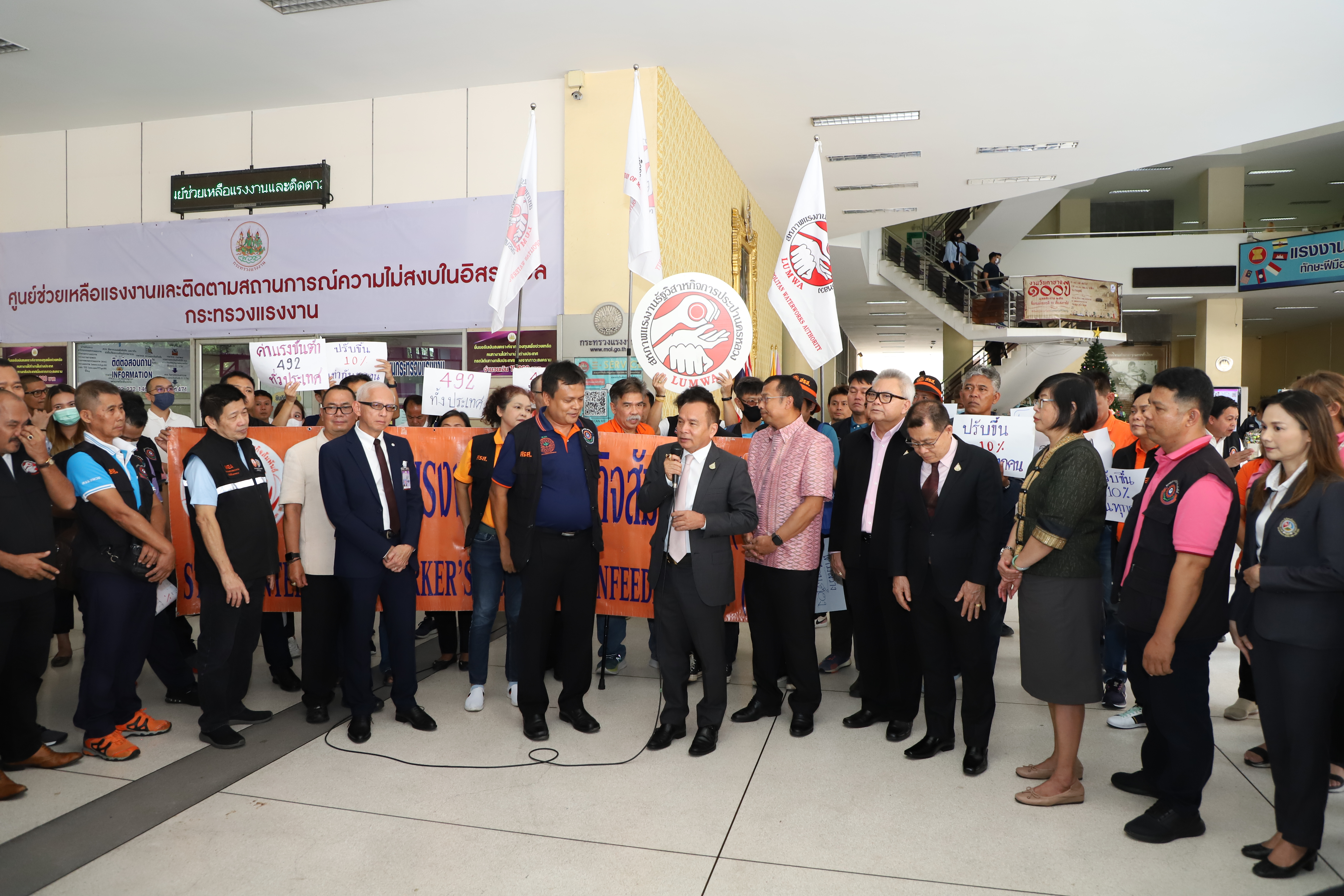 The Secretariat to the Labour Minister, Mr. Aree Krainara, said that the Ministry of Labour was pleased with their visit today. The meeting today was considered a friendly one, working for the grassroots workers together. He said that whatever is within their power and not against the law, he would be happy to support them to move forward. In the areas where the Ministry of Labour has authority, it will expedite further action. But the important thing is that they must help each other. Anything that can be supported will be, and anything that can be fixed will be fixed. He also asked for fellow workers to be at ease and that the requests would be further presented to the Minister.