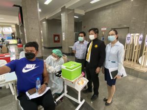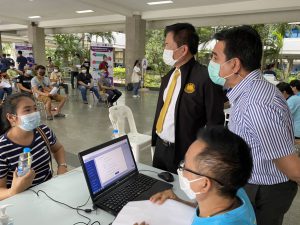 เมื่อวันที่ 8 มิถุนายน 2564 เวลา 11.00 น. นายสุเทพ ชิตยวงษ์ เลขานุการรัฐมนตรีว่าการกระทรวงแรงงาน ลงพื้นที่ตรวจเยี่ยม ศูนย์ฉีดวัคซีนโควิด-19 เพื่อผู้ประกันตน มาตรา 33 ณ มหาวิทยาลัยเกษมบัณฑิต ร่มเกล้า กรุงเทพมหานคร ในความรับผิดชอบของสำนักงานประกันสังคมกรุงเทพมหานคร พื้นที่ 10 เพื่อเป็นขวัญและกำลังใจแก่ผู้ประกันตน บุคลากรทางการแพทย์ ข้าราชการและเจ้าหน้าที่ของสำนักงานประกันสังคม